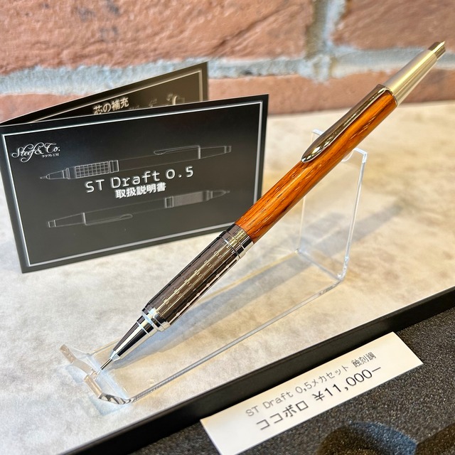 Steef & Co ST Draft 短軸メカセット シャープ 0.5mm 木軸ペンは、希少な天然杢を使用してます (レジン・チタン・エボナイト・革を除く)。 世界に1本だけのペンをどうぞお楽しみ下さい。 外寸 : 長さ 約150mm 最大軸幅 約9.5mm 重量 : 約42g (杢種や材質よって差異はあります) Steef&Co 正規販売店 ペンネジューク 静岡県富士市吉原3-4-5 tel 0545-57-0080 ※ 当店は店頭優先にて販売してます。 オンライン販売は不定期となってますので出品に関するお問合せはご遠慮ください。 【注意点】必ずお読み下さい ※ 写真と実物で、色味が異なって見える場合があります。 *店頭在庫と共用となります、品切れの際はご容赦下さい。 * お客様都合での返品は不可とさせて頂きます。 *保証・修理については、Steef&Co様に 直接お問合せ下さい。 保証内容は保証書に記載(必ず保管下さい) 問い合わせ先は下記へお願いします E-mail: [email protected]