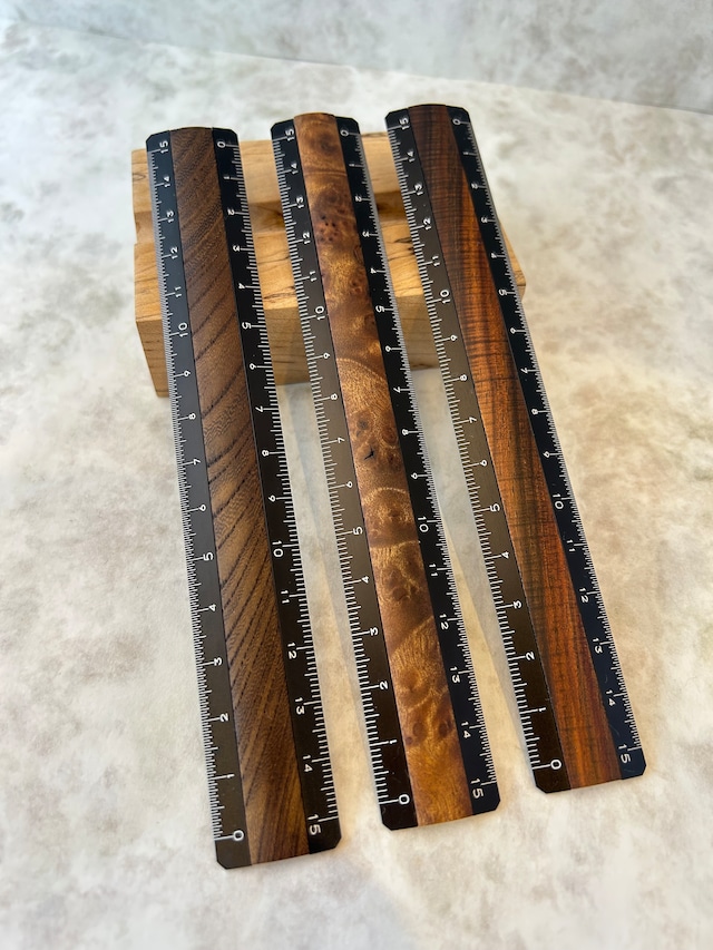 Ruk(ルカ) カスタム定規 15cm 【神代ケヤキ・マーブルウッド・サイアミーズローズウッド】