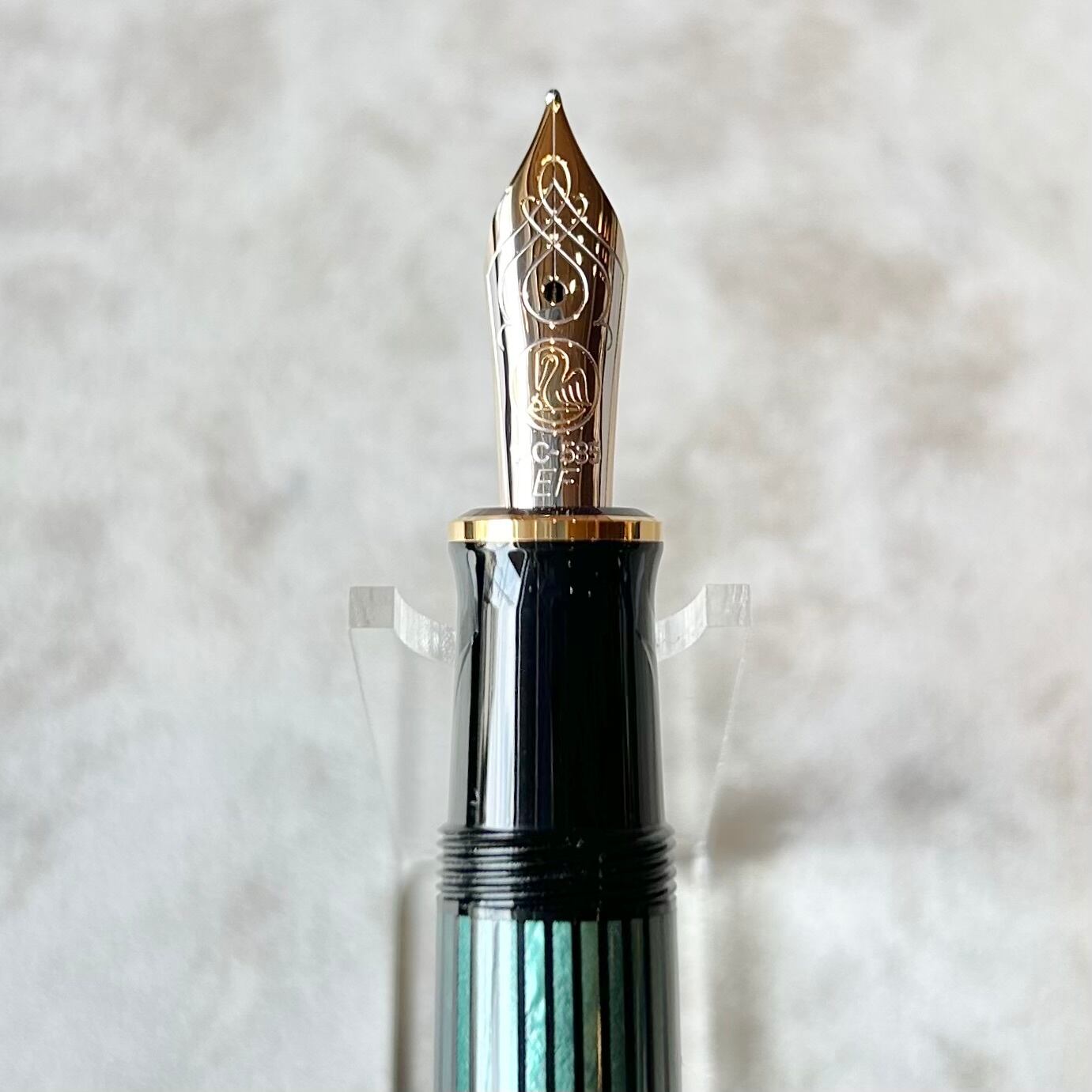 ペリカン万年筆「スーベレーンM600 グリーンストライプ」/字幅EF&F&M/ゴールドクリップ