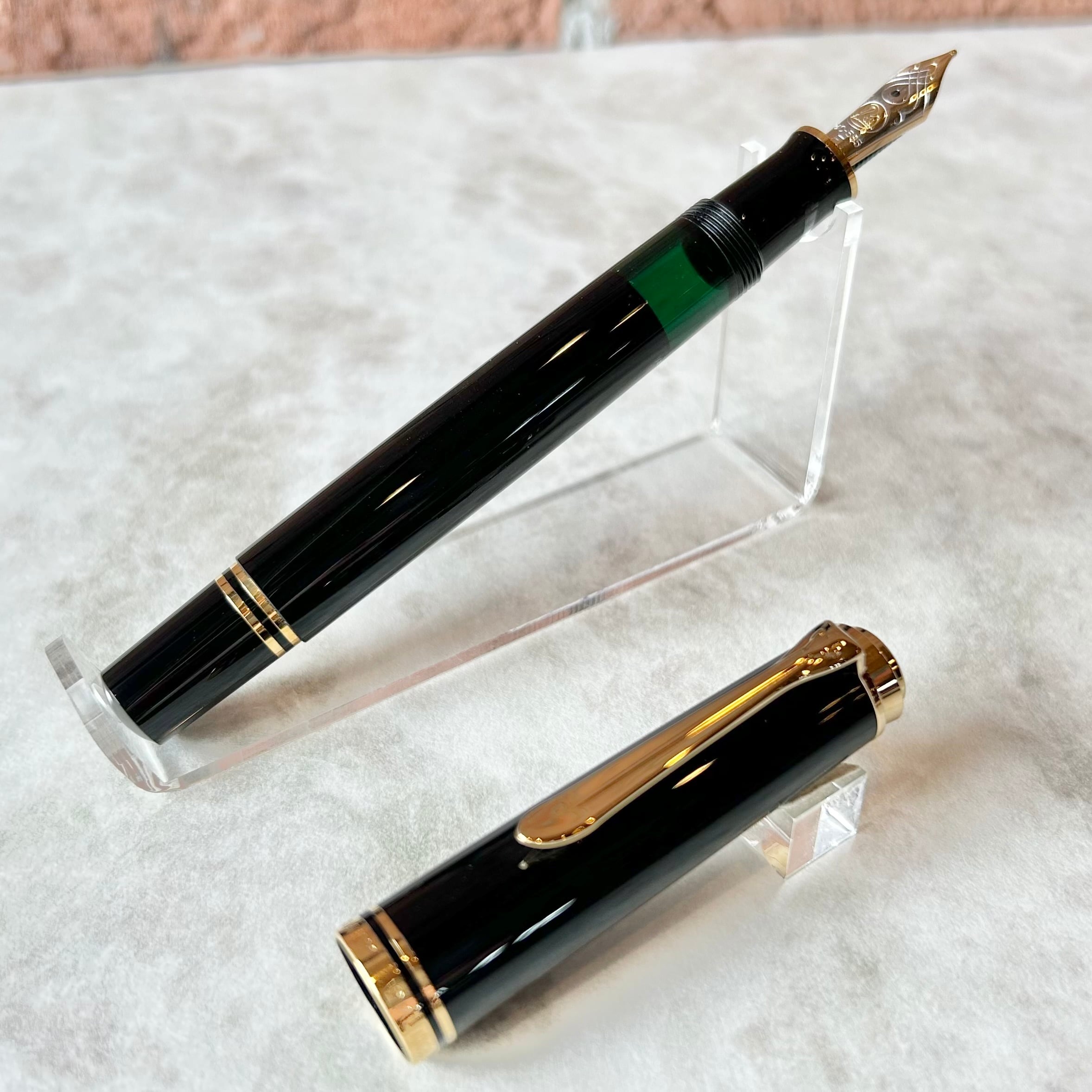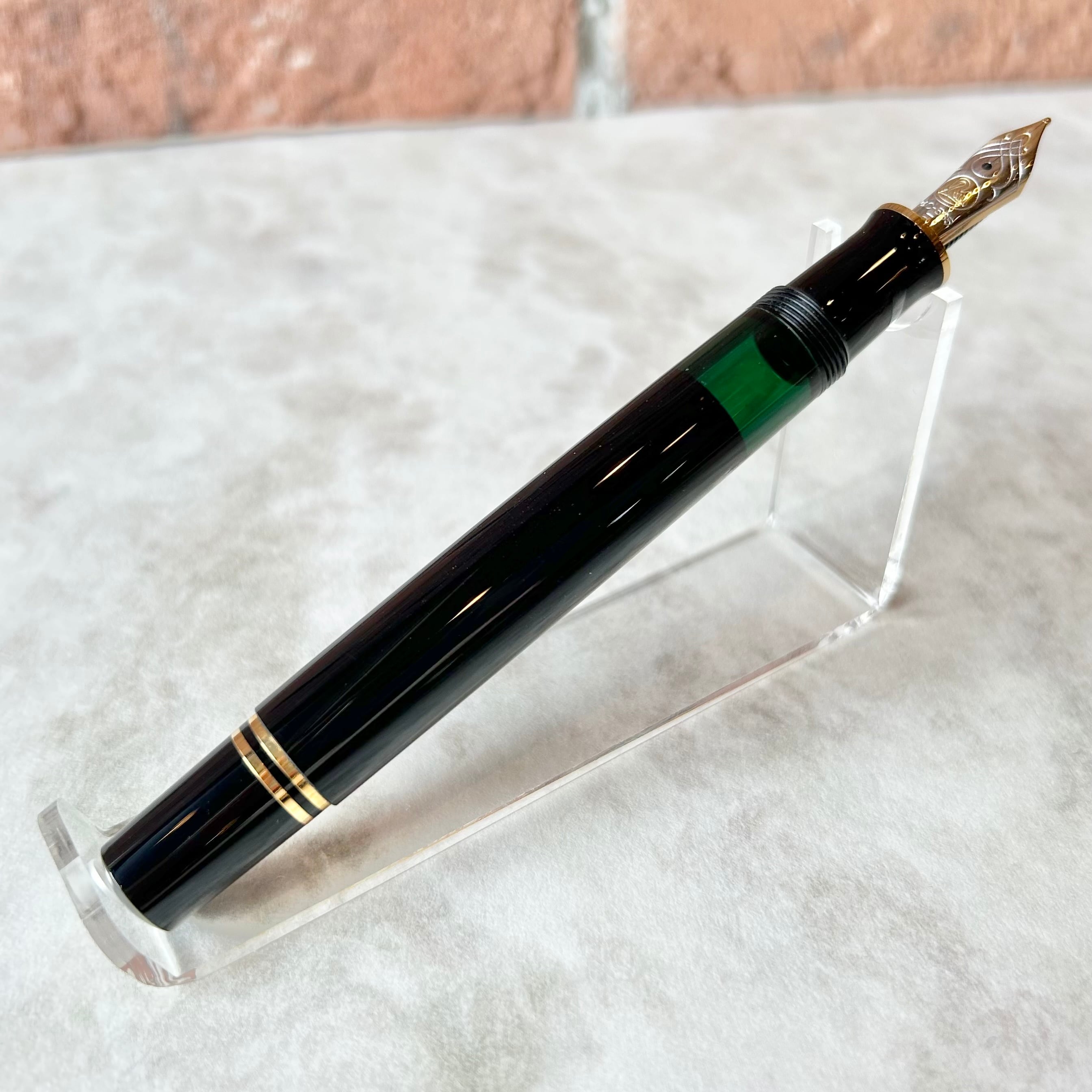 ブラックの胴軸と、半透明グリーンの首軸、ゴールドの金属パーツというクラシカルな雰囲気をお楽しみください。