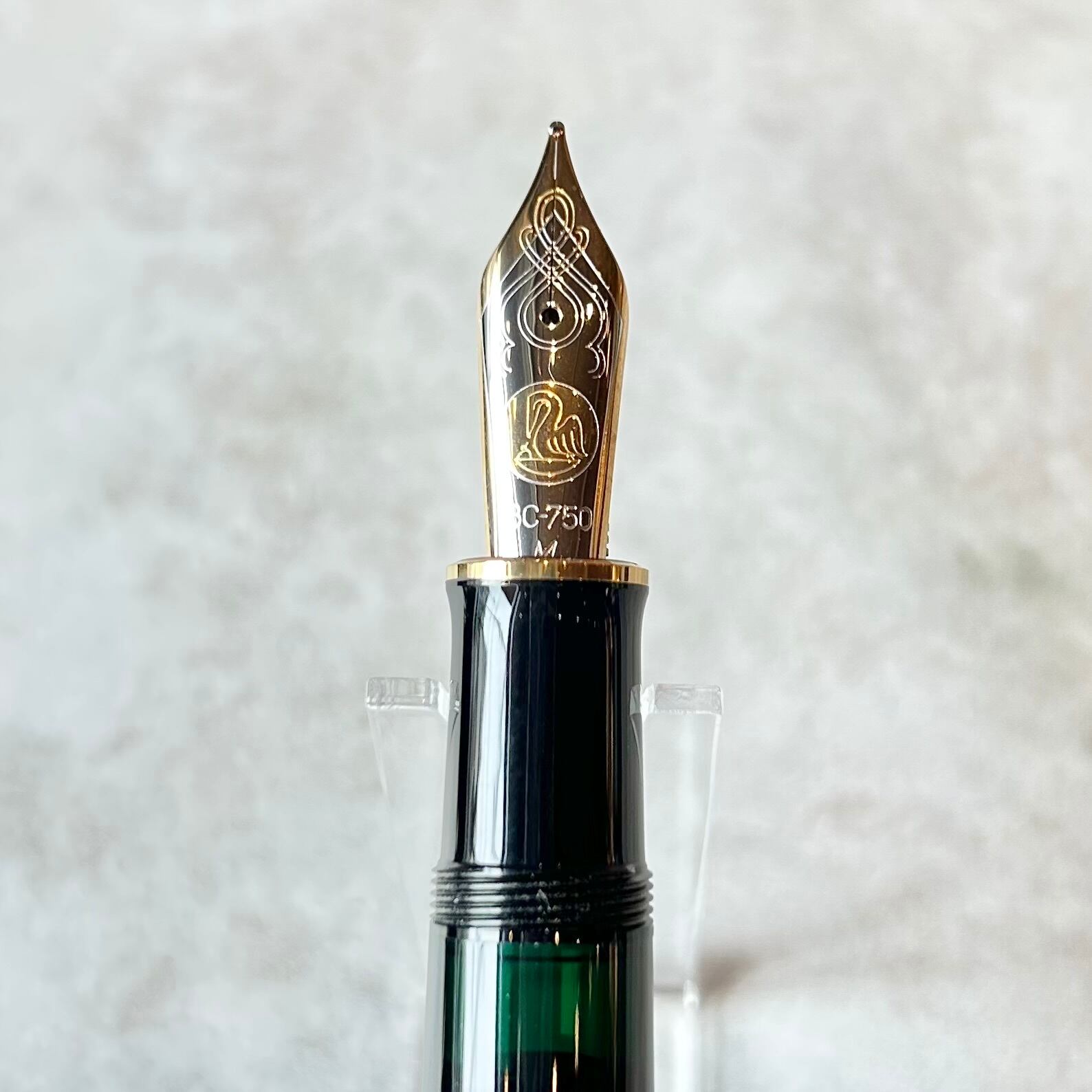 ブラックの胴軸と、半透明グリーンの首軸、ゴールドの金属パーツというクラシカルな雰囲気をお楽しみください。