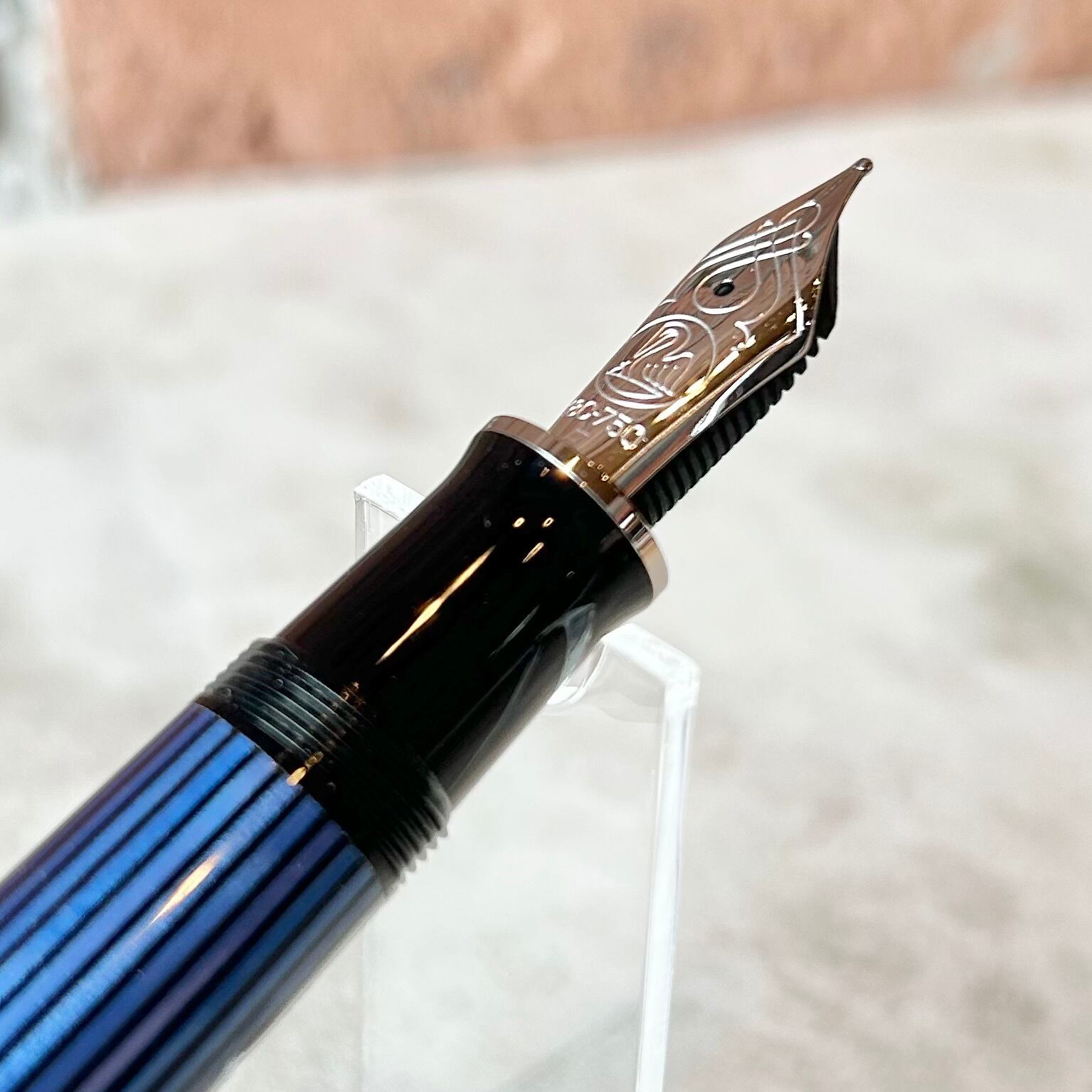 ペリカン万年筆「スーベレーンM805 ブルーストライプ」/字幅F&M/シルバークリップ