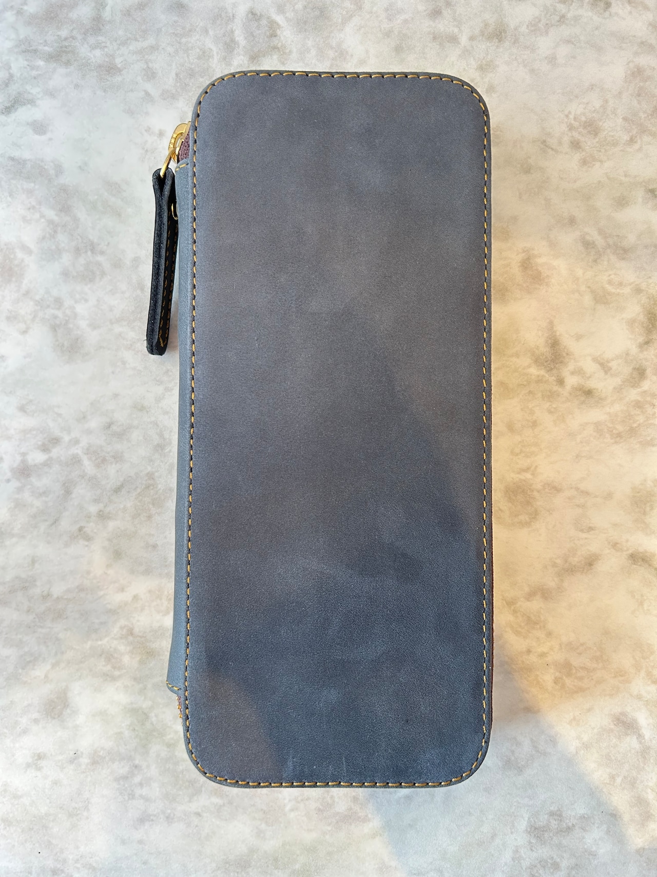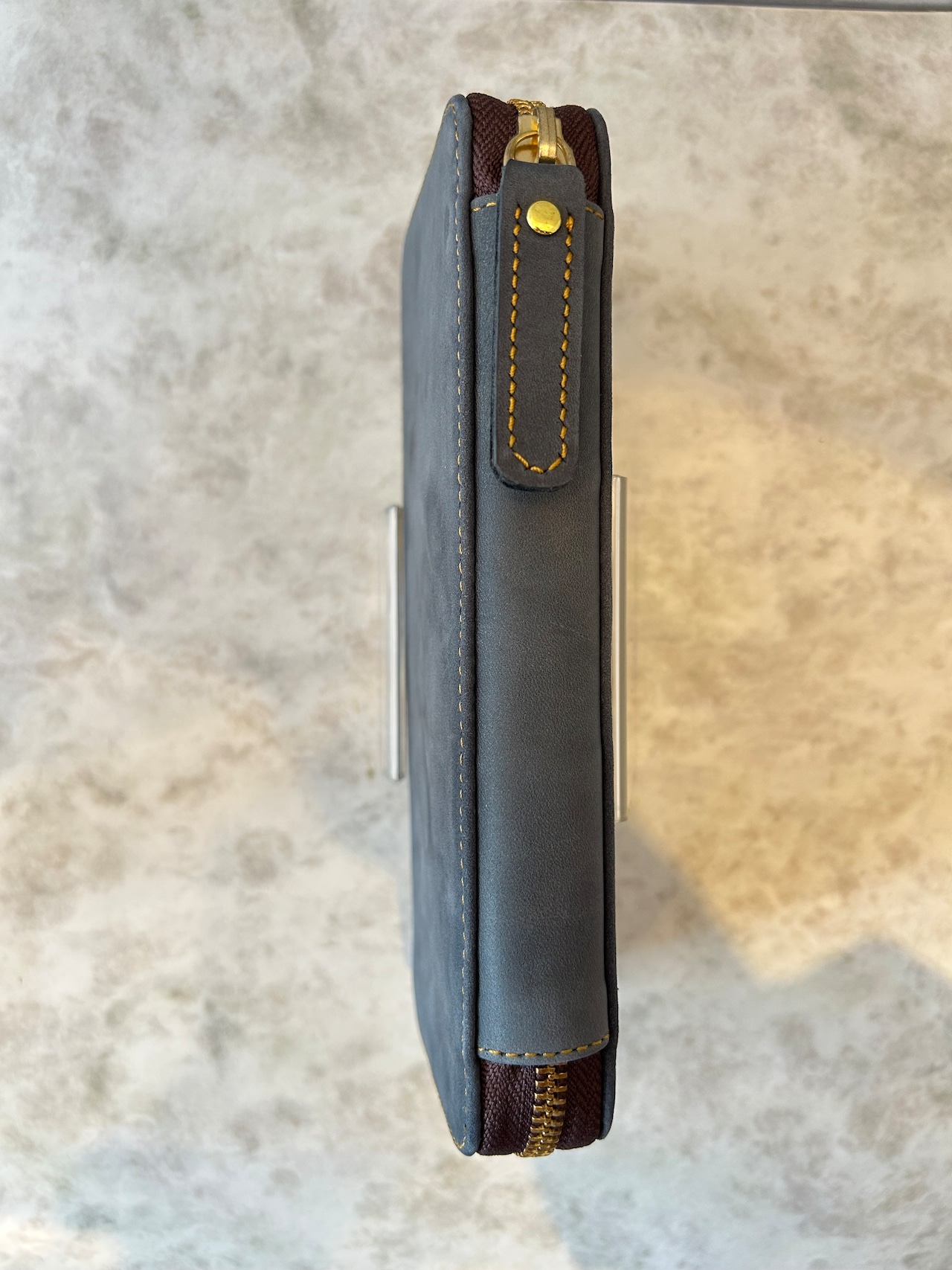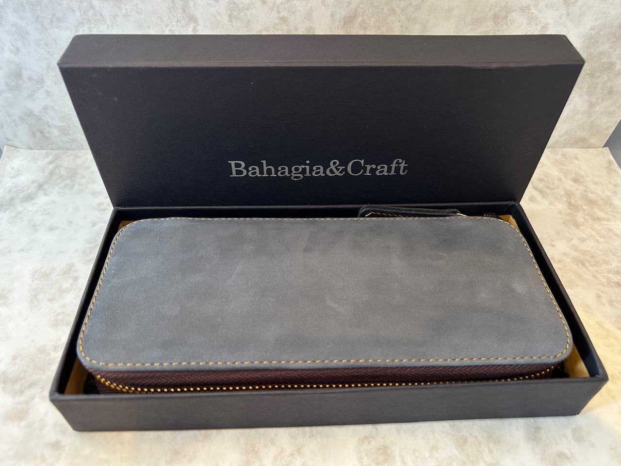 バハギア & クラフト ラウンドジップペンケース (クレイジーホース革 ネイビー)