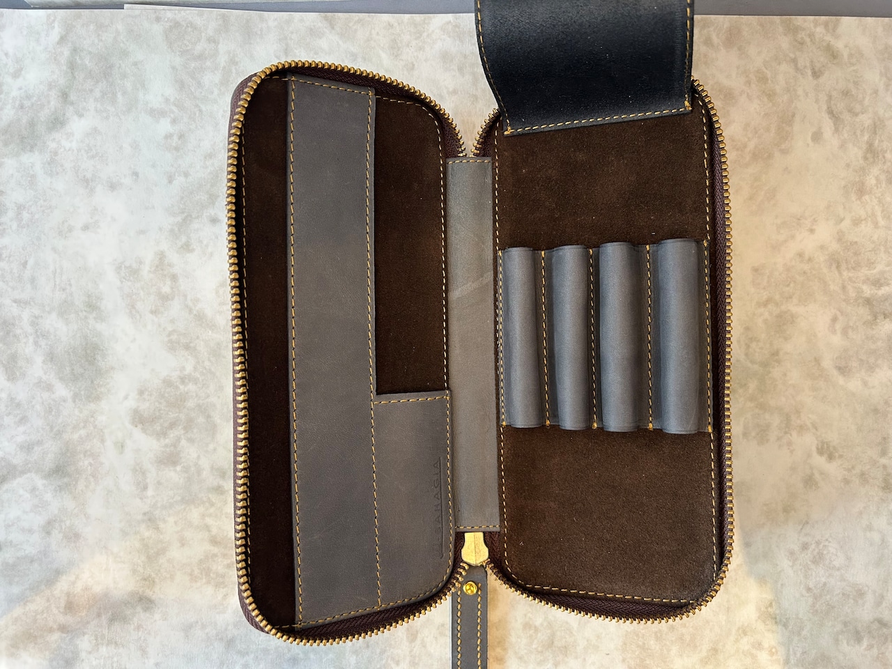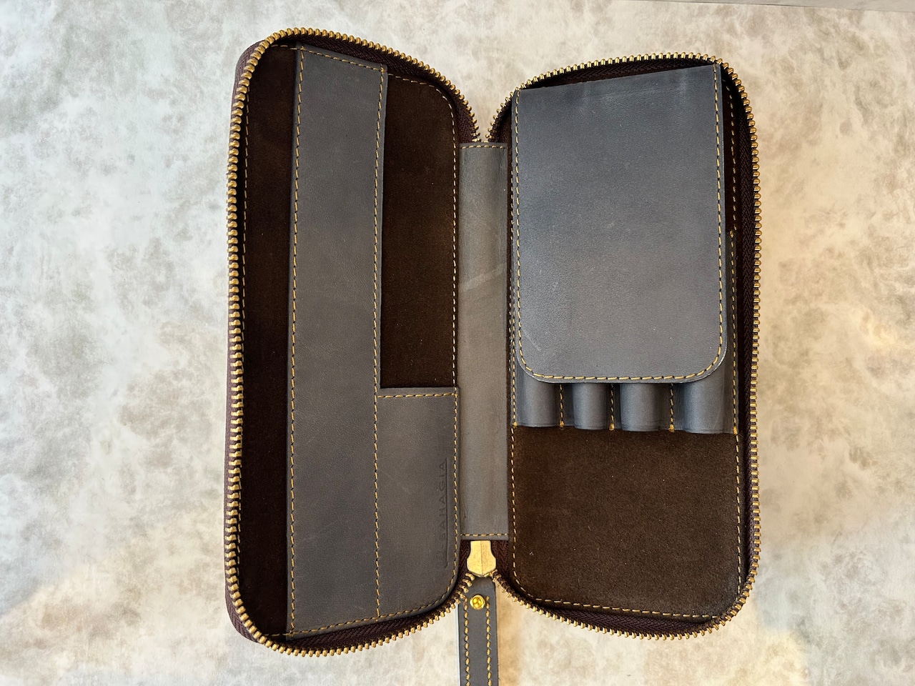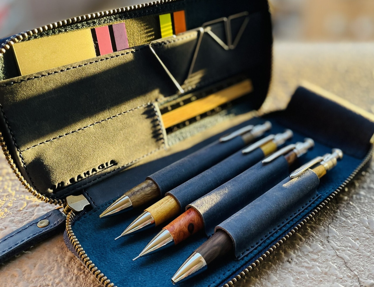 バハギア & クラフト ラウンドジップペンケース (クレイジーホース革 ネイビー)