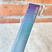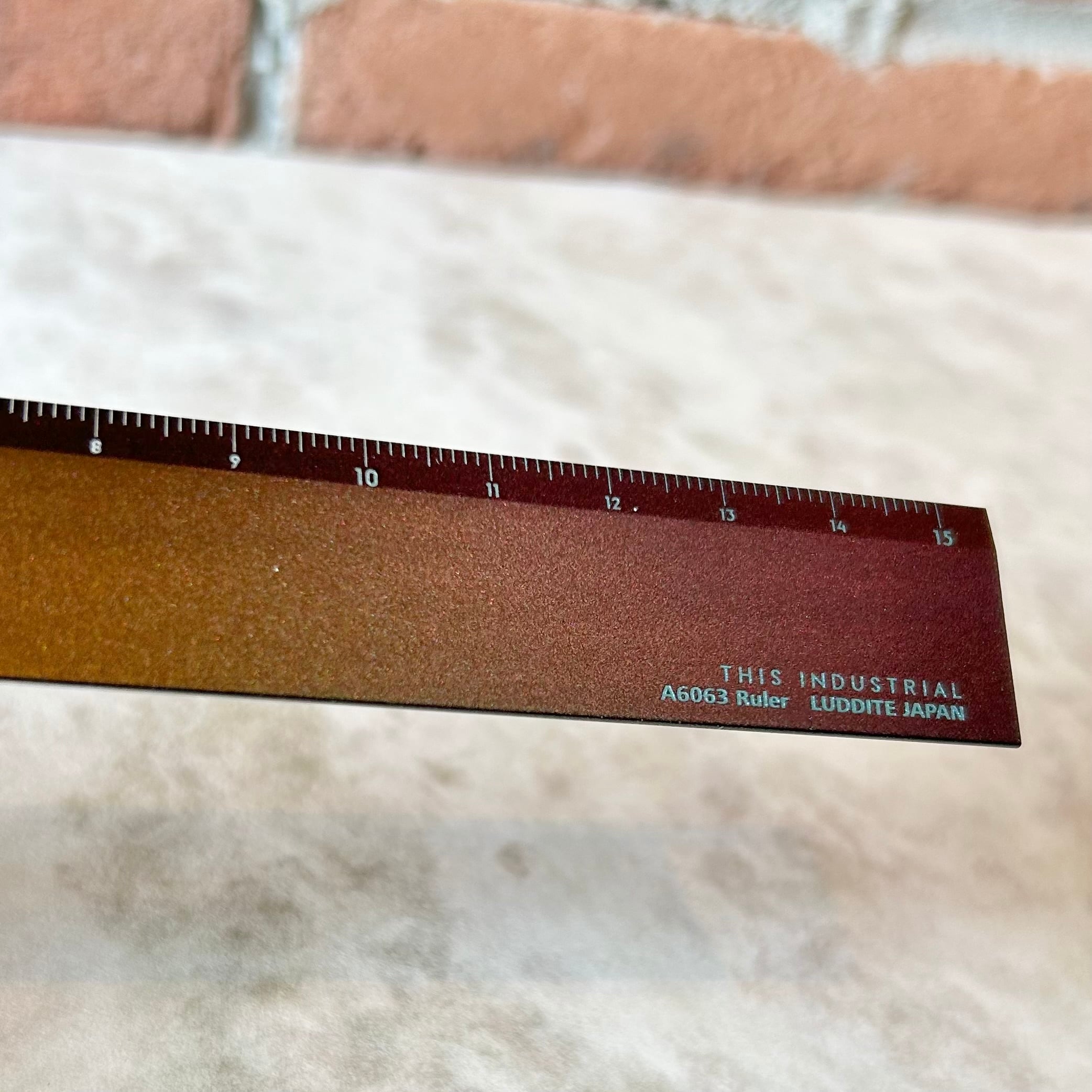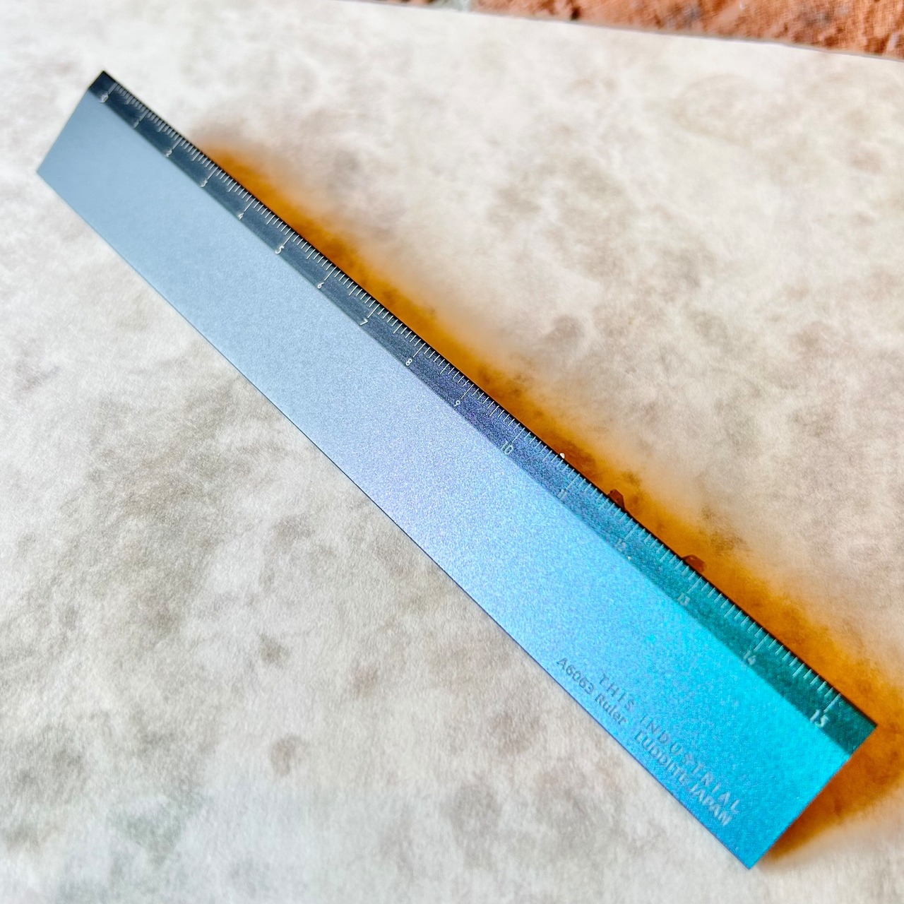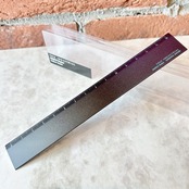 パウダーコーティングを加工したアルミ素材に、偏光カラーの塗料を施した15cm定規です。