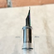 スチール製のペン先のため書き心地としては硬めではありますが、その分しっかりとした筆の運びができます。