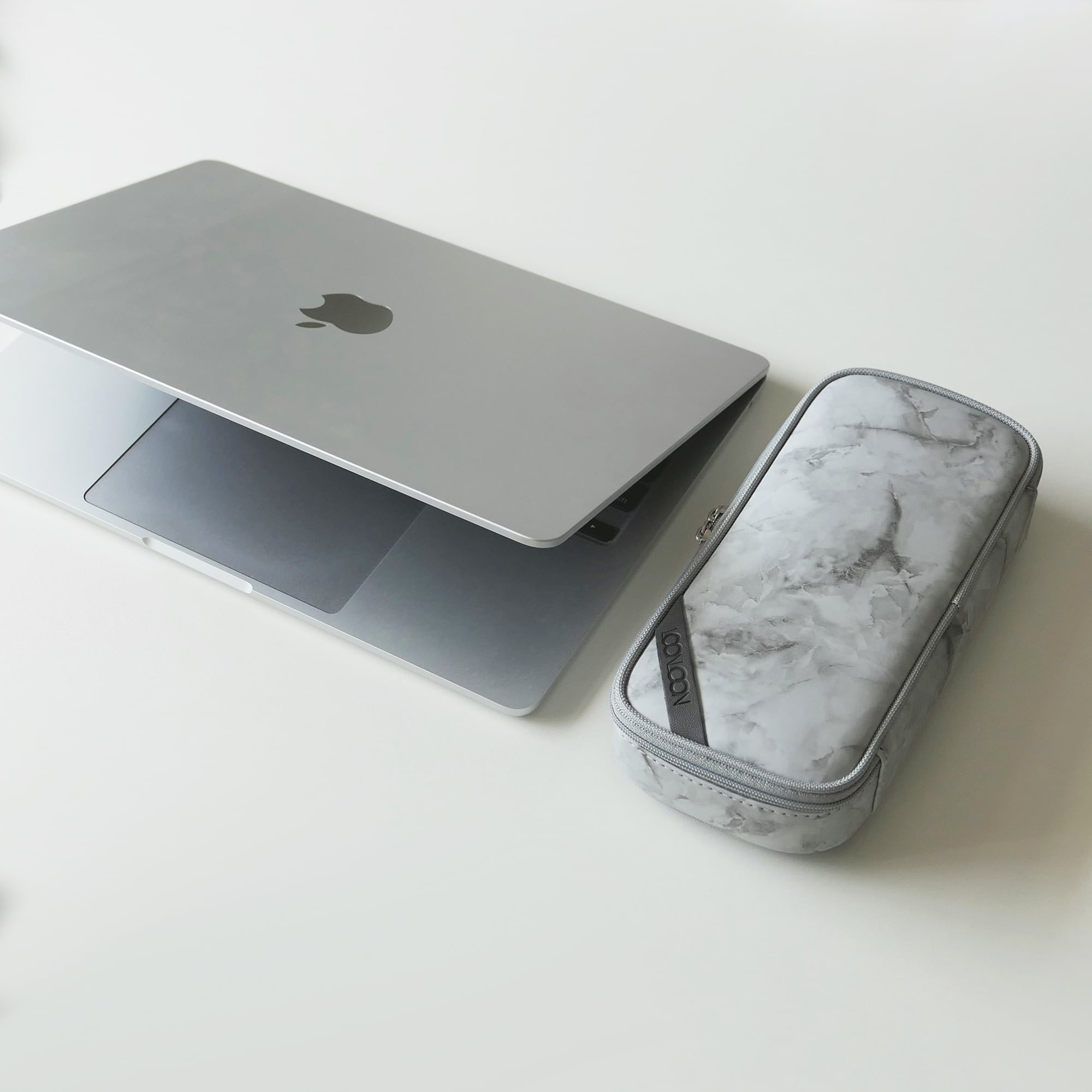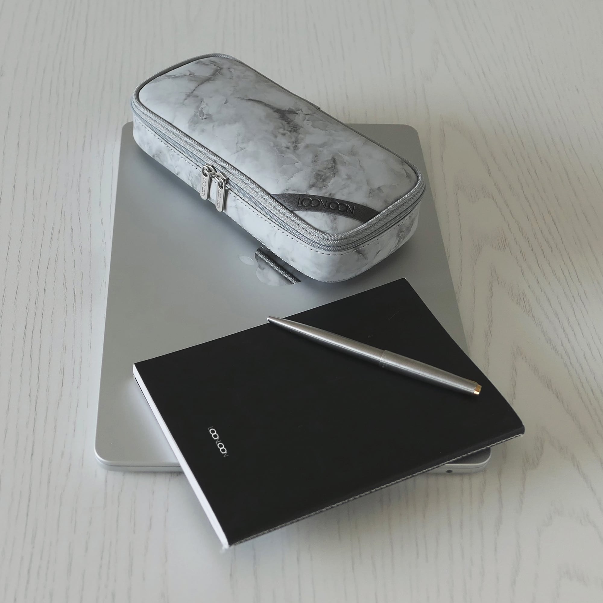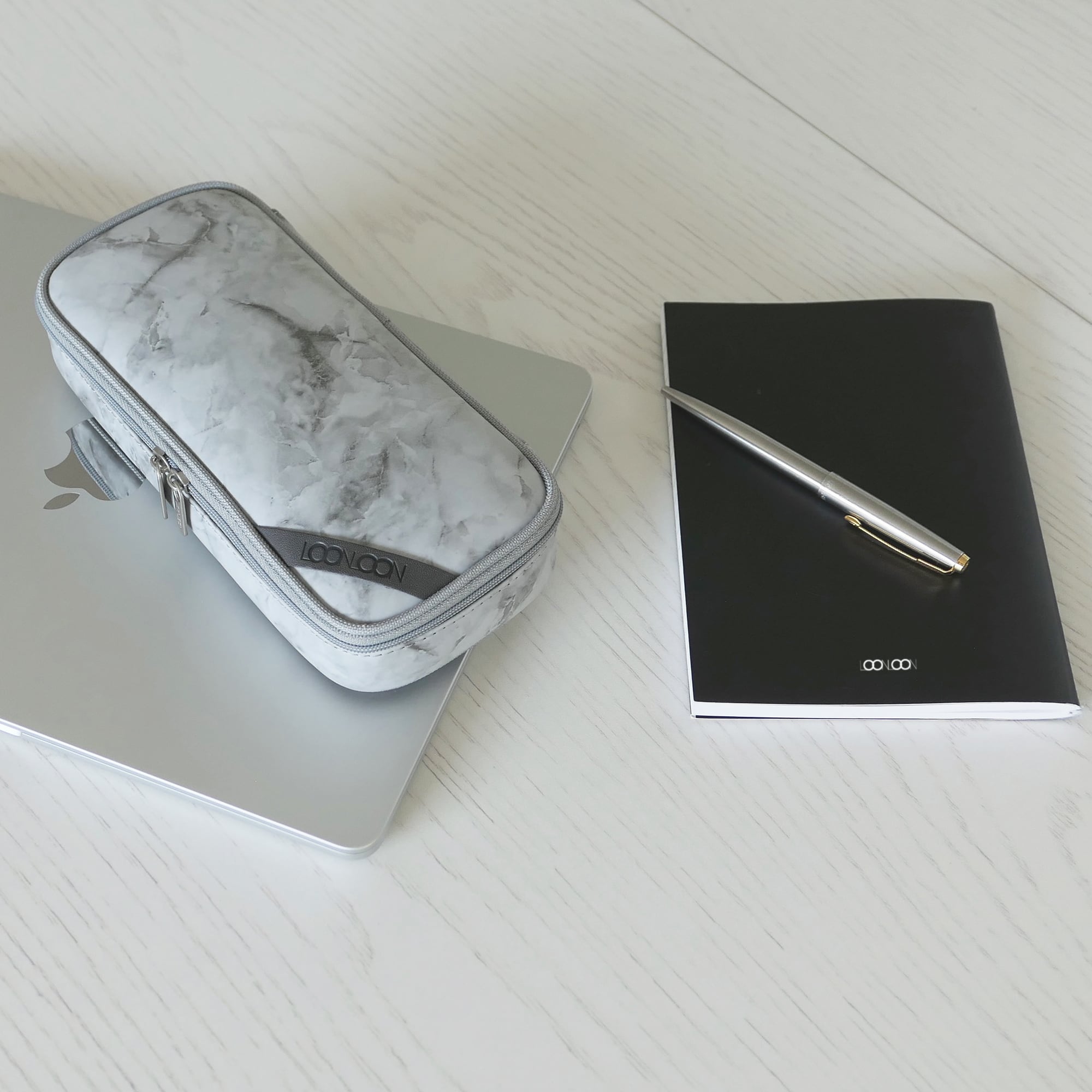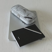 落ち着いた大理石柄とマットなホワイトトーンが調和した、シンプルで上質な雰囲気のペンケースです。