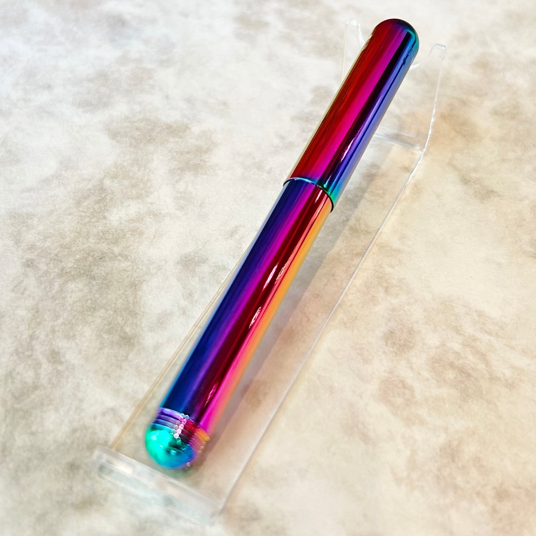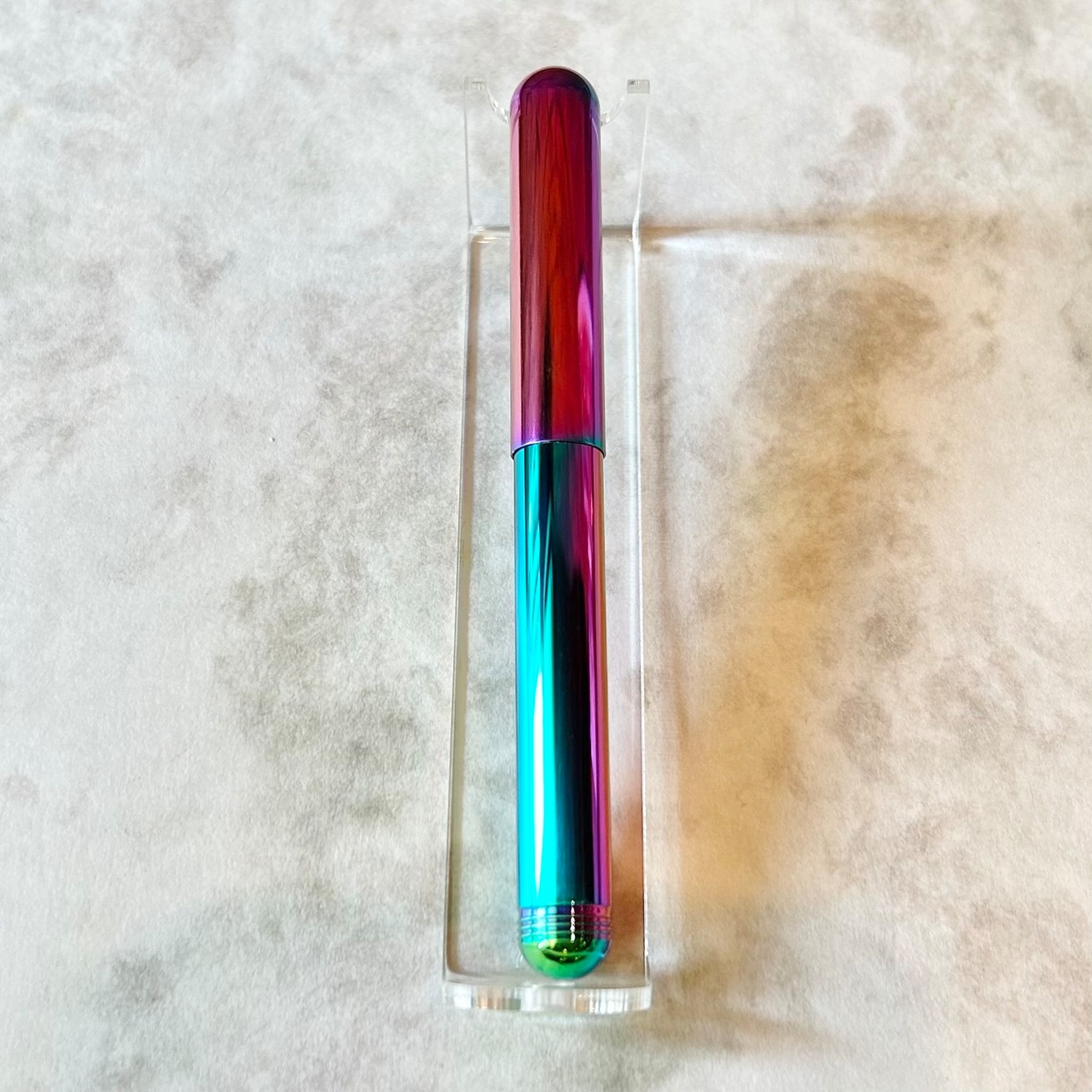 ボディはPVDメッキ加工によって、ハチドリの羽のように光の当たり方で色が美しく変化します。一本ごとに異なる色合いを持ち、それぞれが唯一無二の存在です。