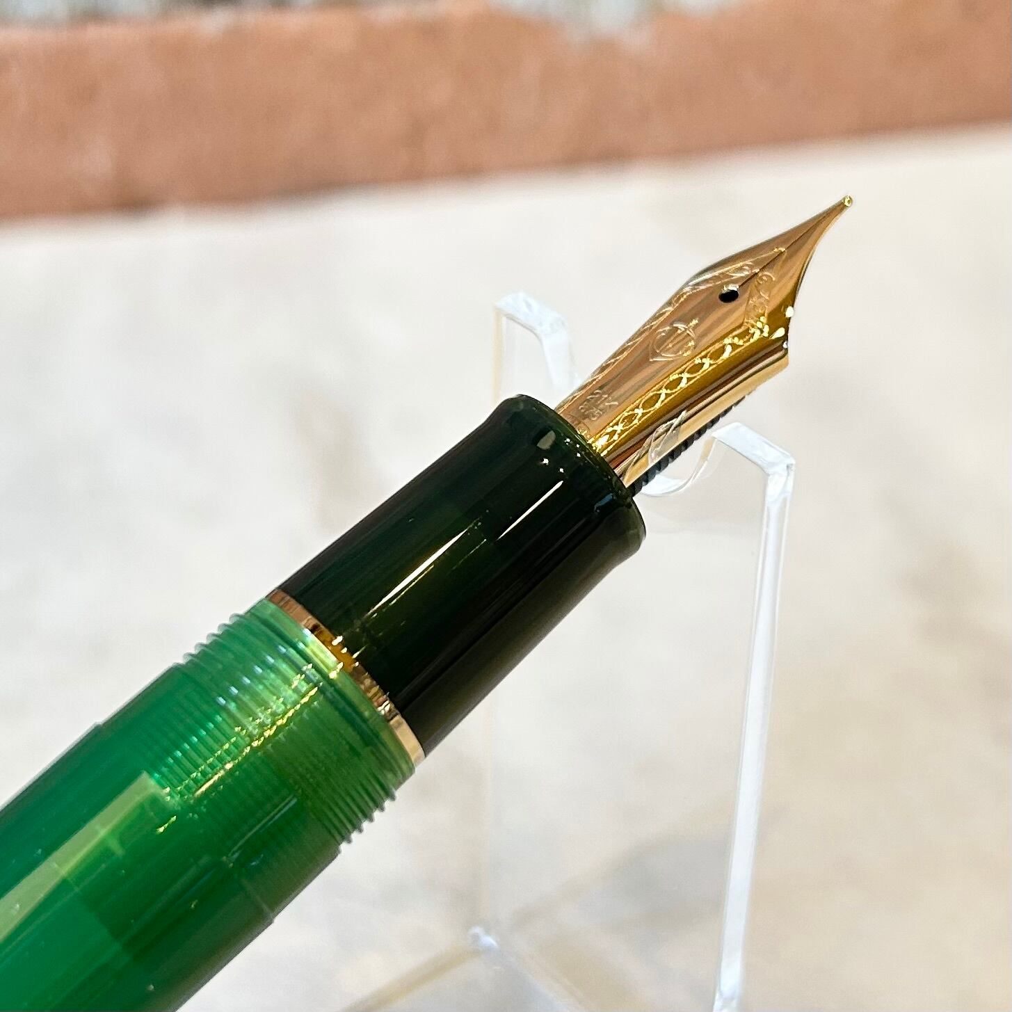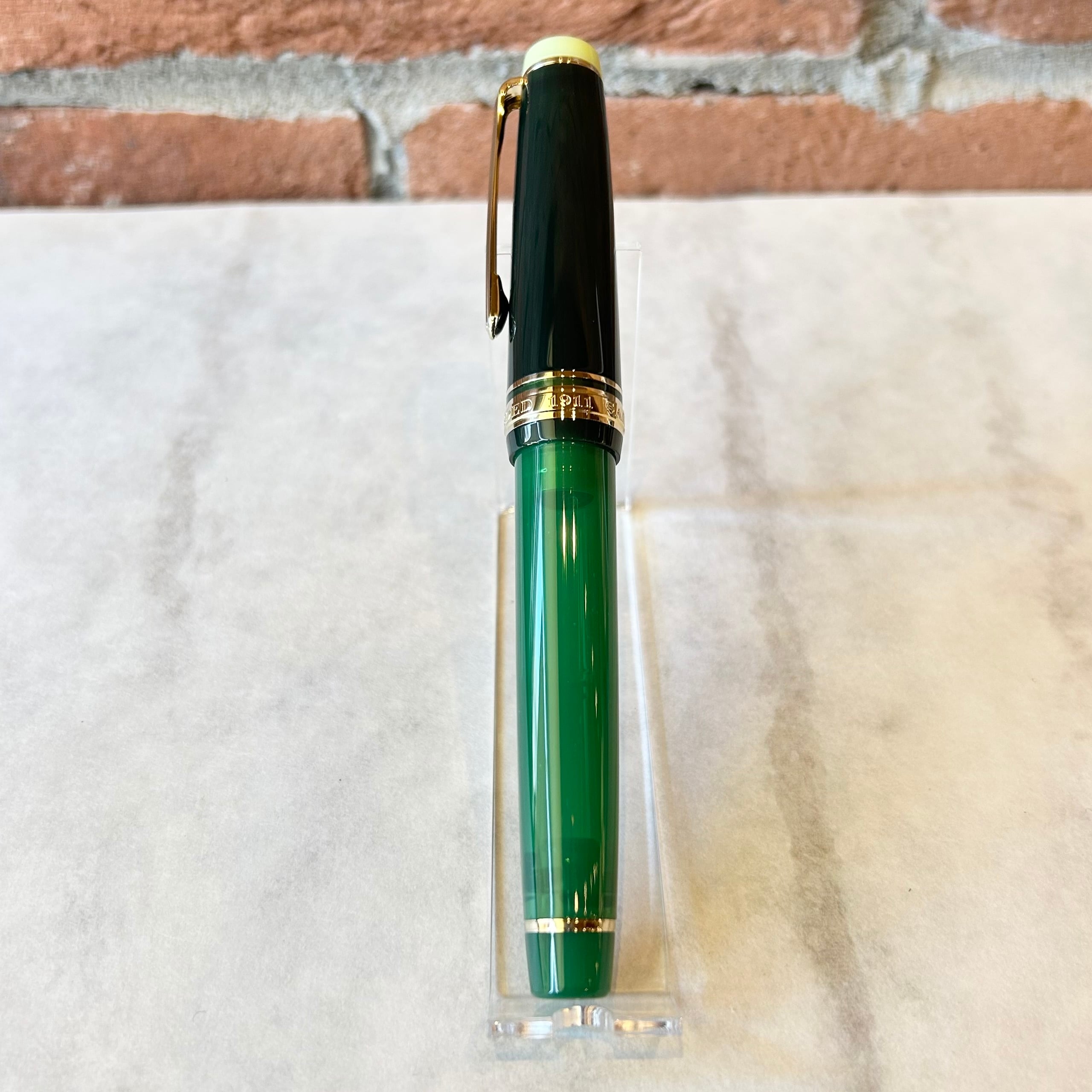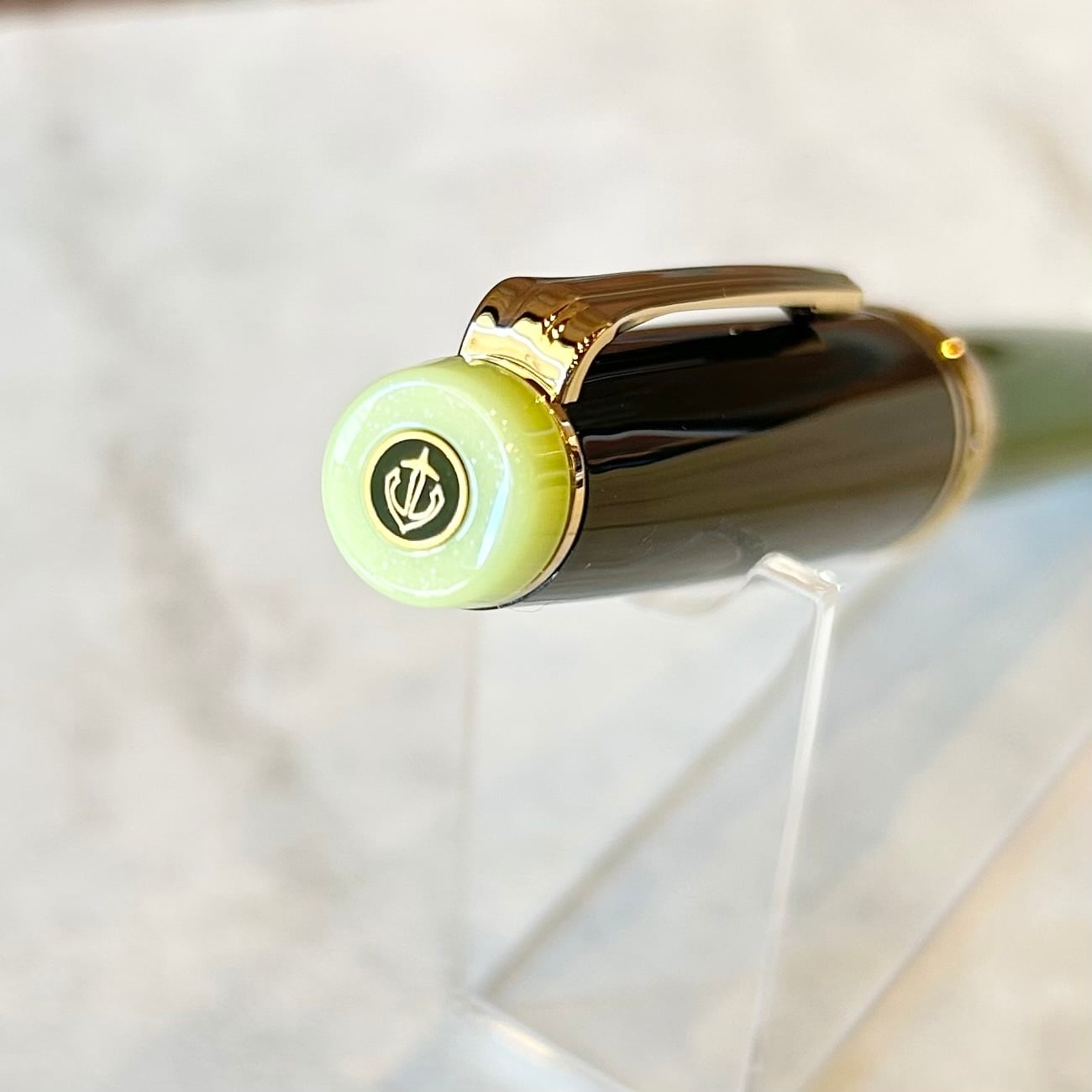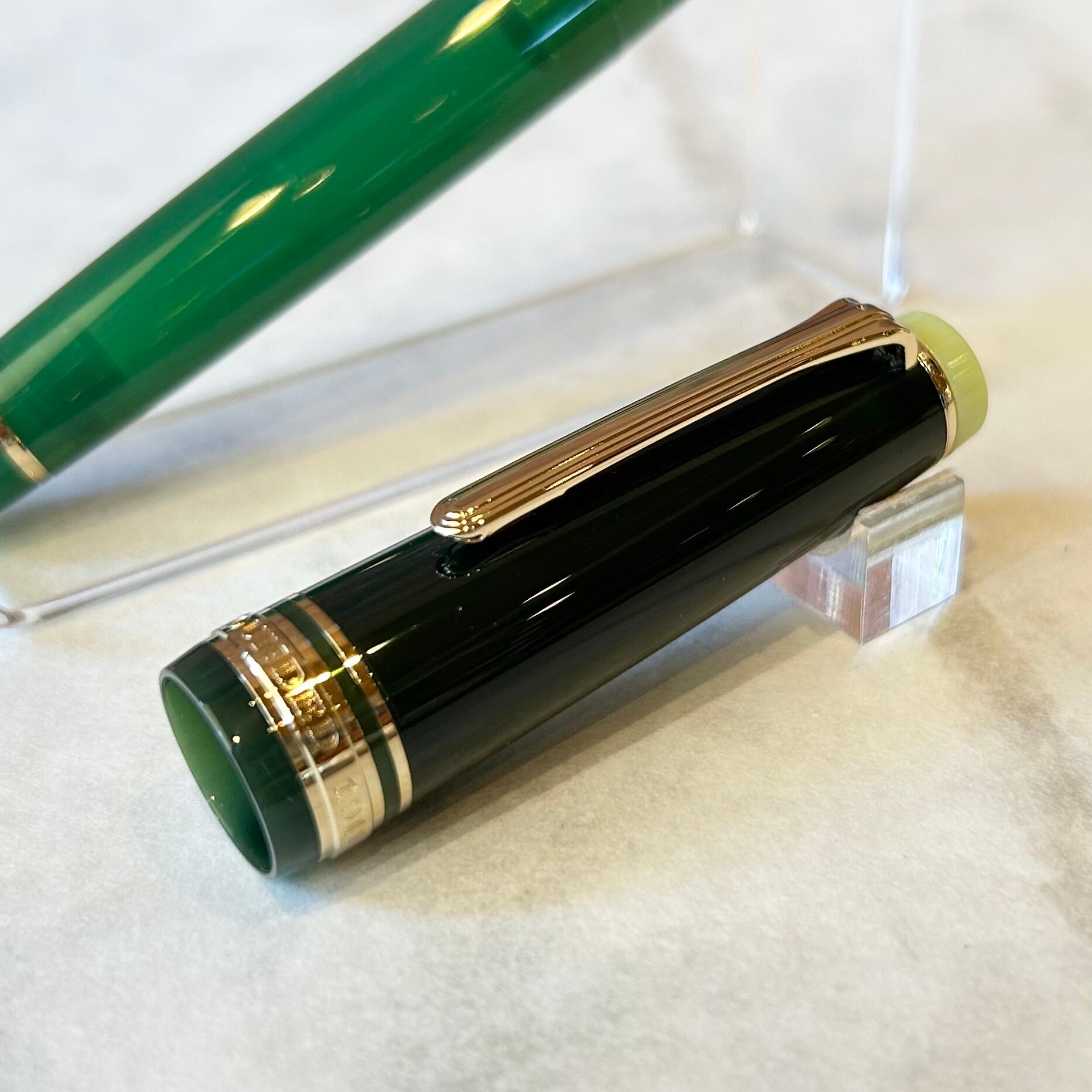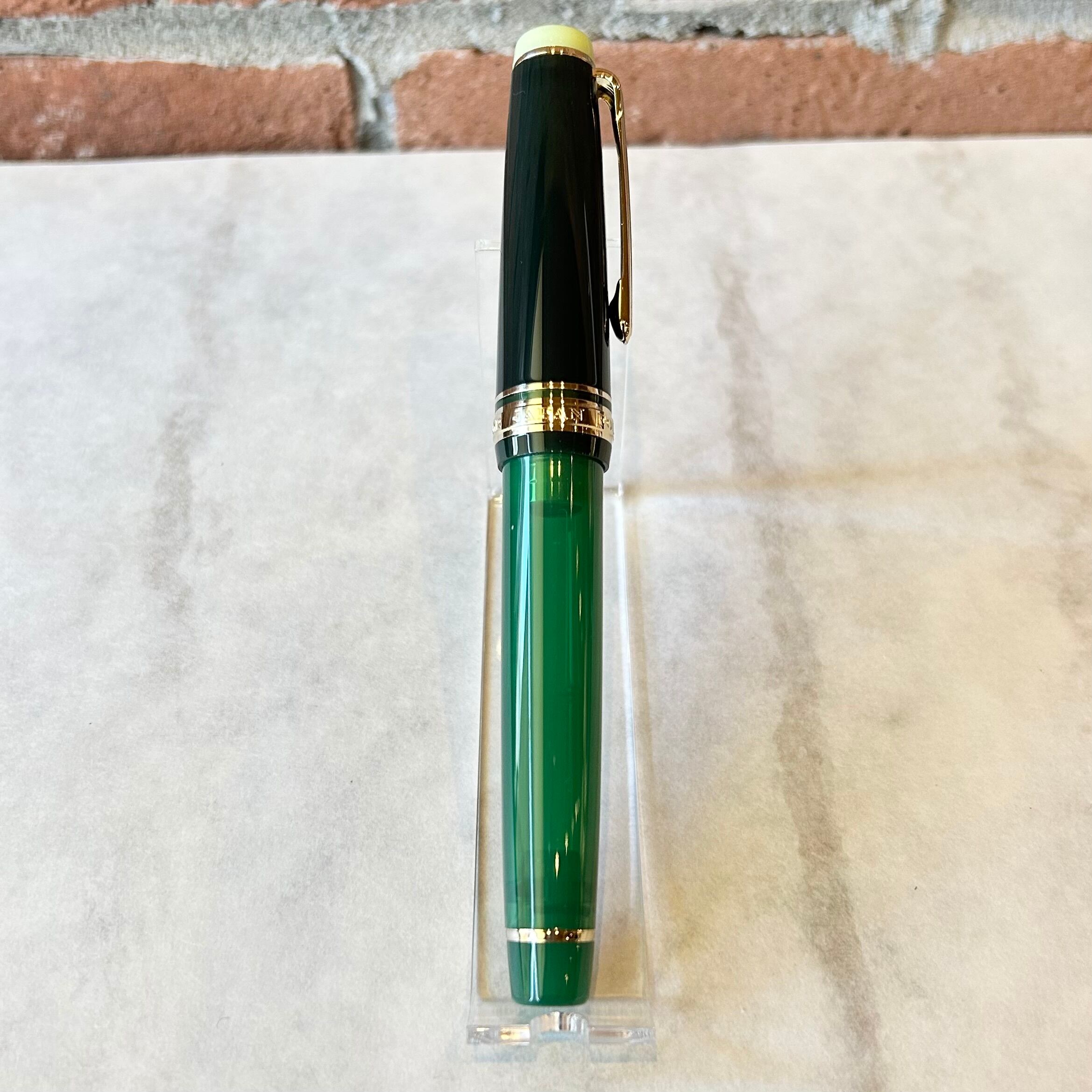 抹茶をイメージした緑の軸と深緑のキャップや首軸部分が「侘び寂び」の雰囲気を演出しています。