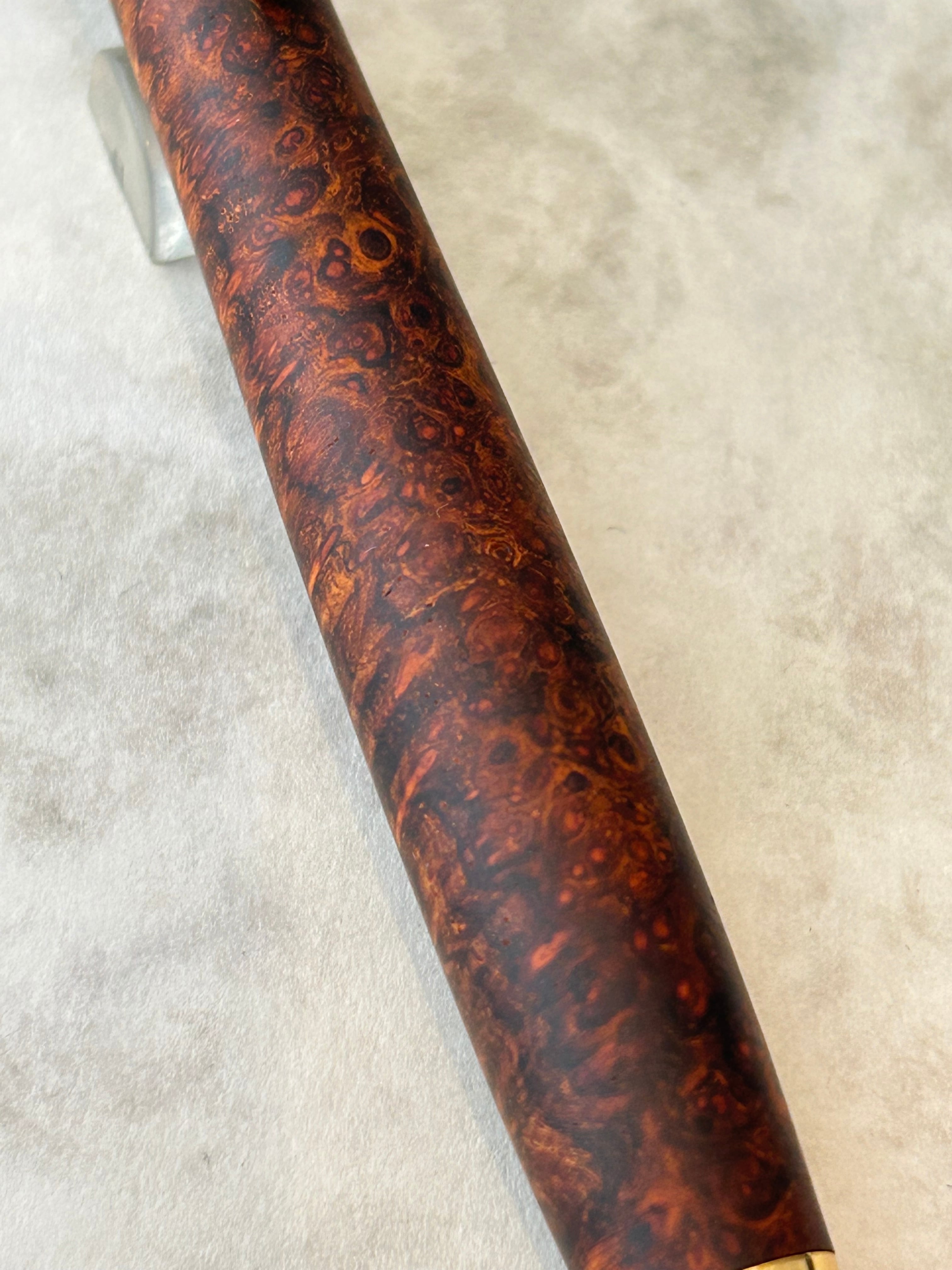 オリジナル金具と良質な杢を特長とした作品です