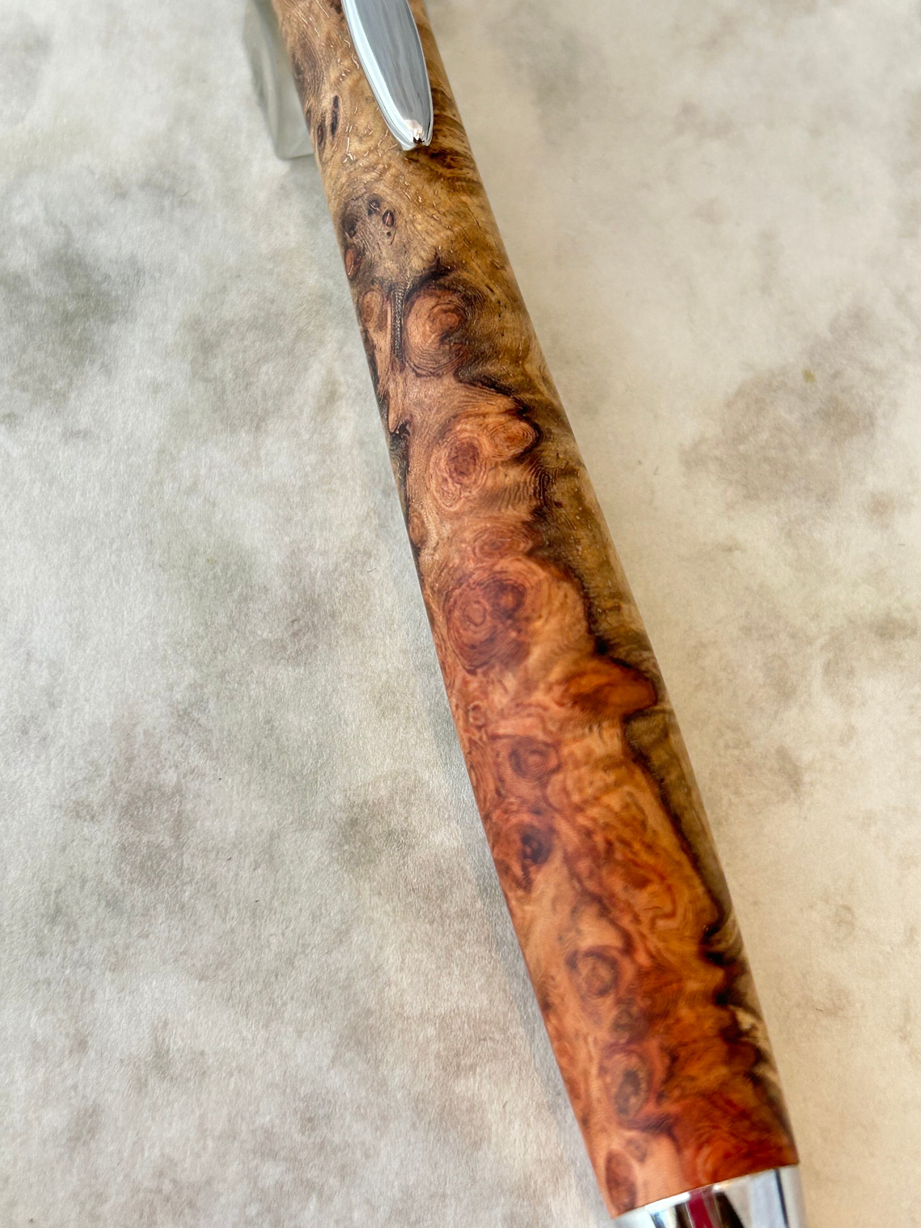 オリジナル金具と良質な杢を特長とした作品です