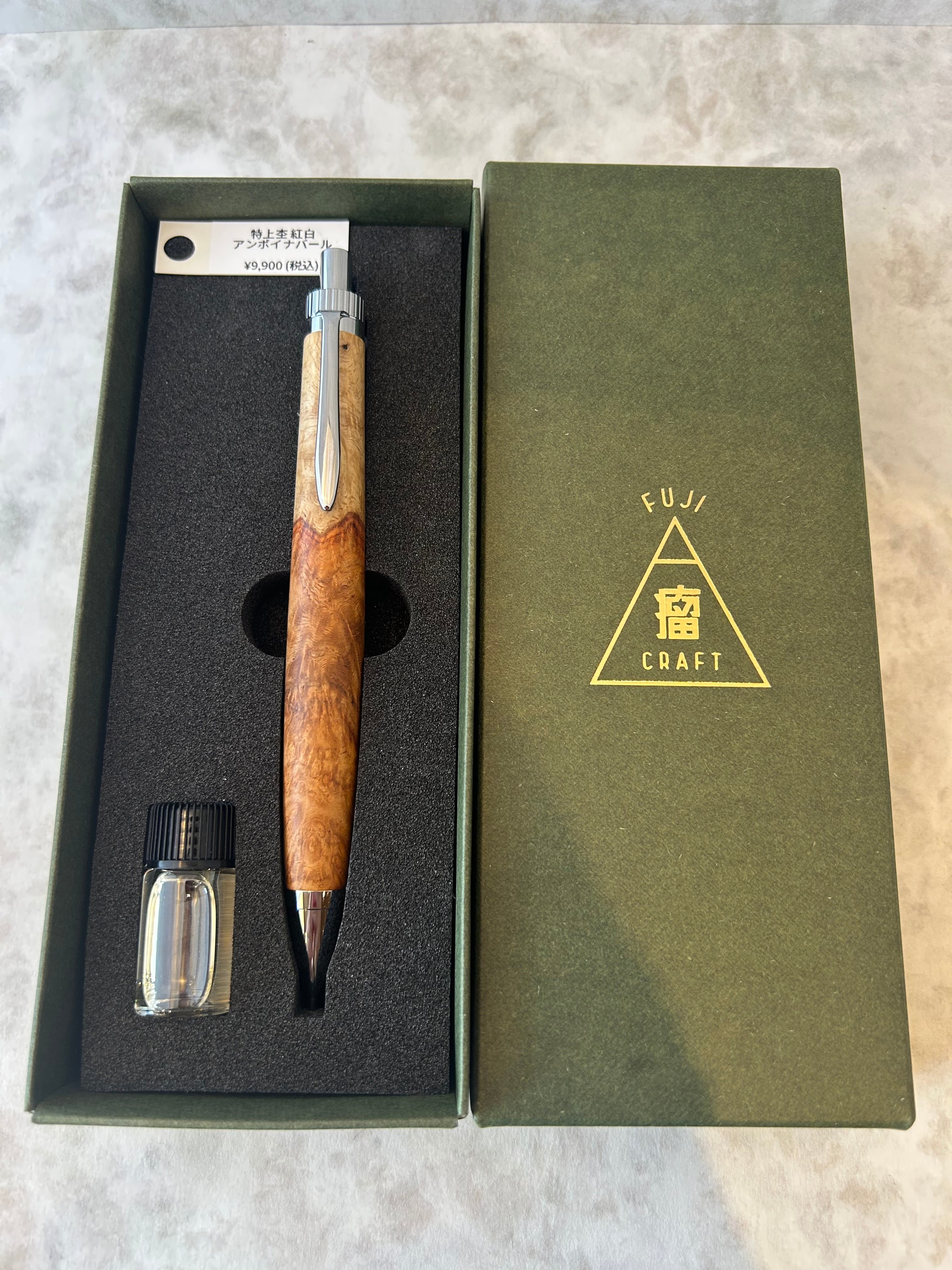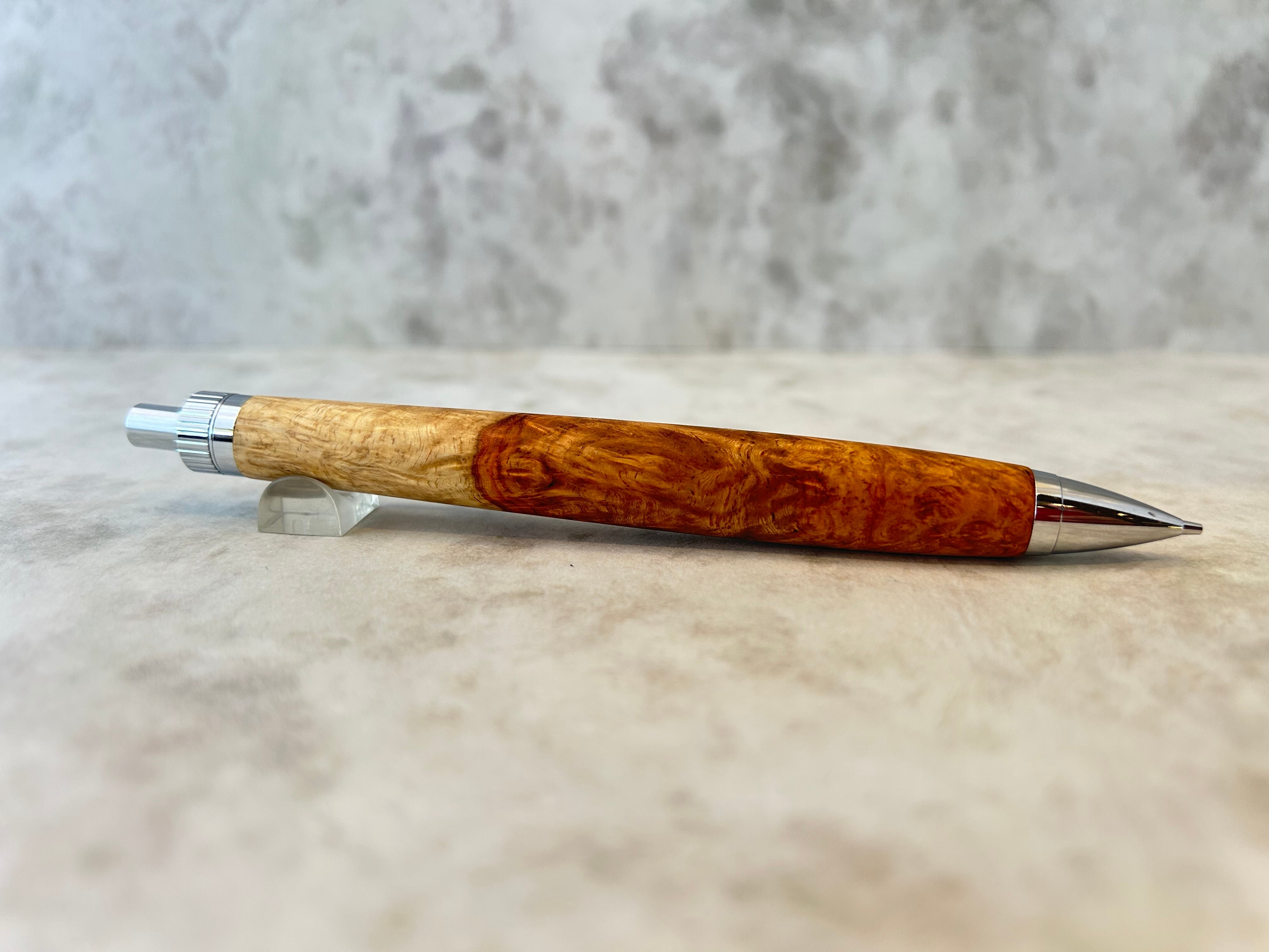 富士瘤クラフト シャープペン 【花梨瘤 極上杢 紅白①】ボールペン換装可
