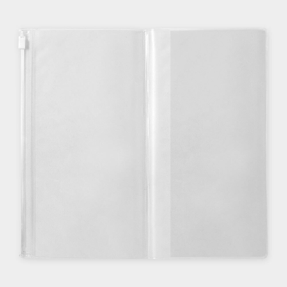ノートリフィルの外側に一緒に挟み込んでお使いください。片方はジッパーケース、もう片方はポケットになっています。ジッパーケースには、切符やレシートなどの紙モノ、さらに鍵やコインなども収納できます。片方のポケットには写真や切り抜いた地図などを入れても便利です。透明なので、中身がわかりやすいのも特徴です。ジッパーケースがあるだけで、ノートとしてだけでなく、ケースとしての使い方も広がります。