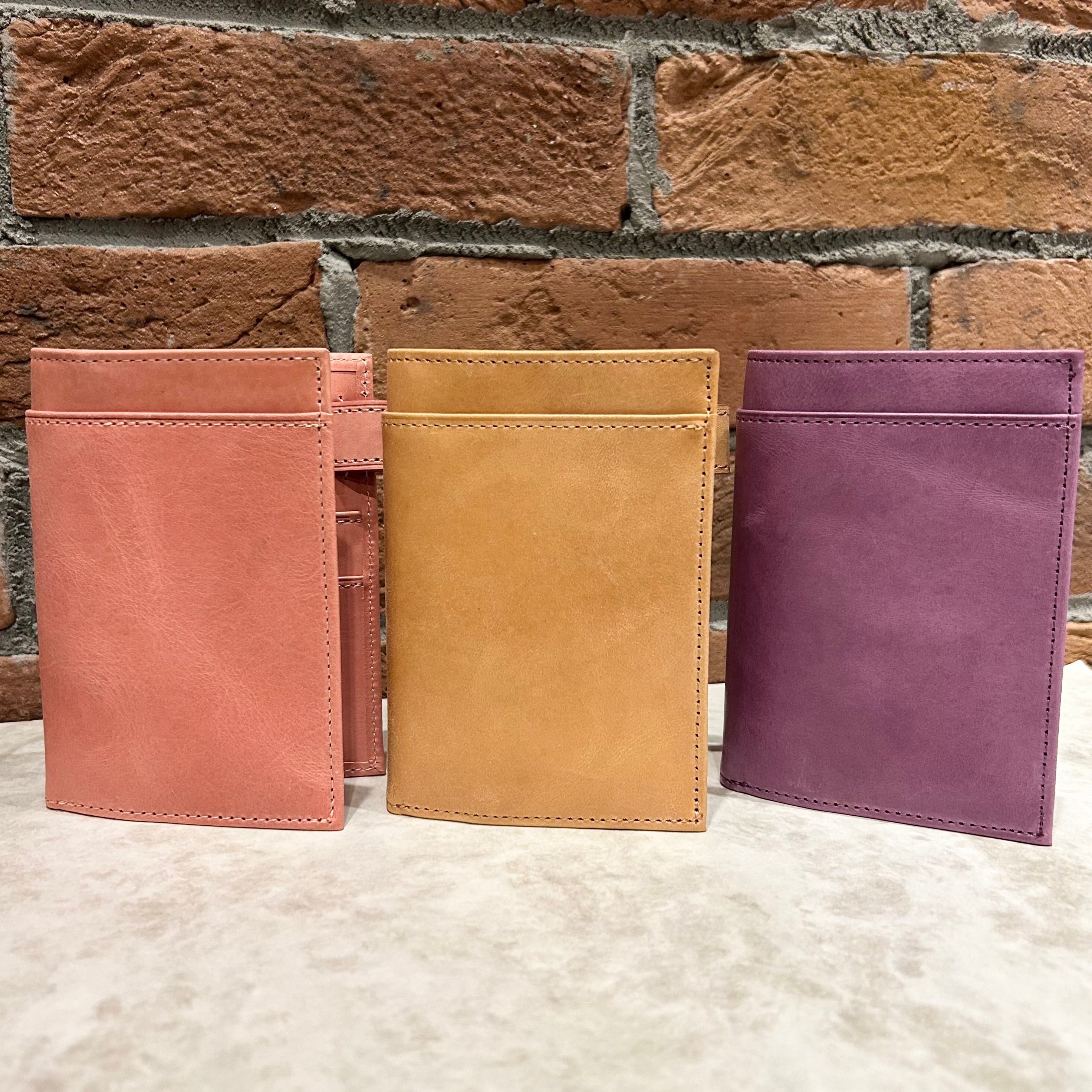 植物タンニン鞣しのヌメ革を染料で染めたあと、1枚1枚手塗りでワックスを塗り込み仕上げています。
