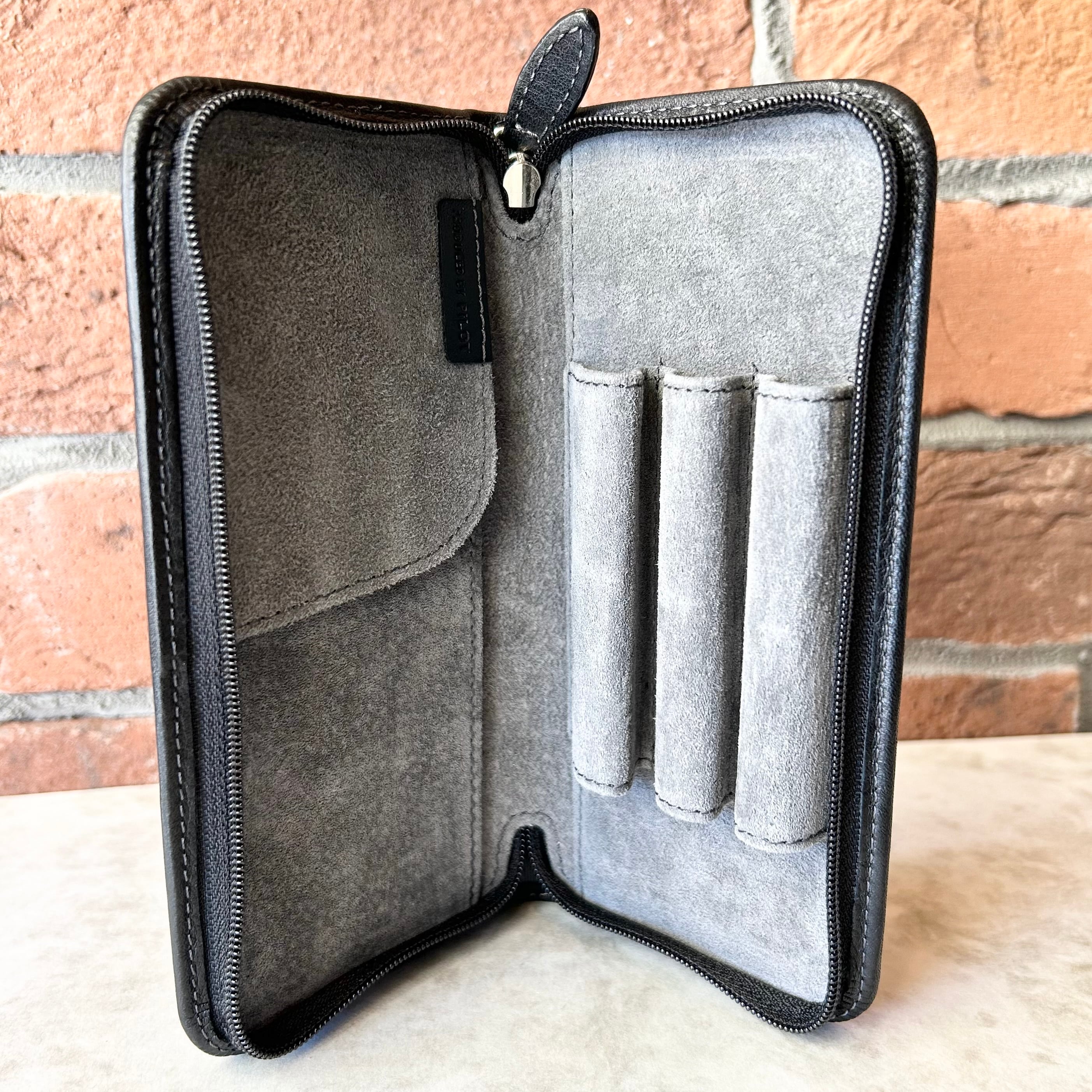 PILOT(パイロット)から販売されている、ラウンドファスナータイプの3本差し革製ペンケースです。