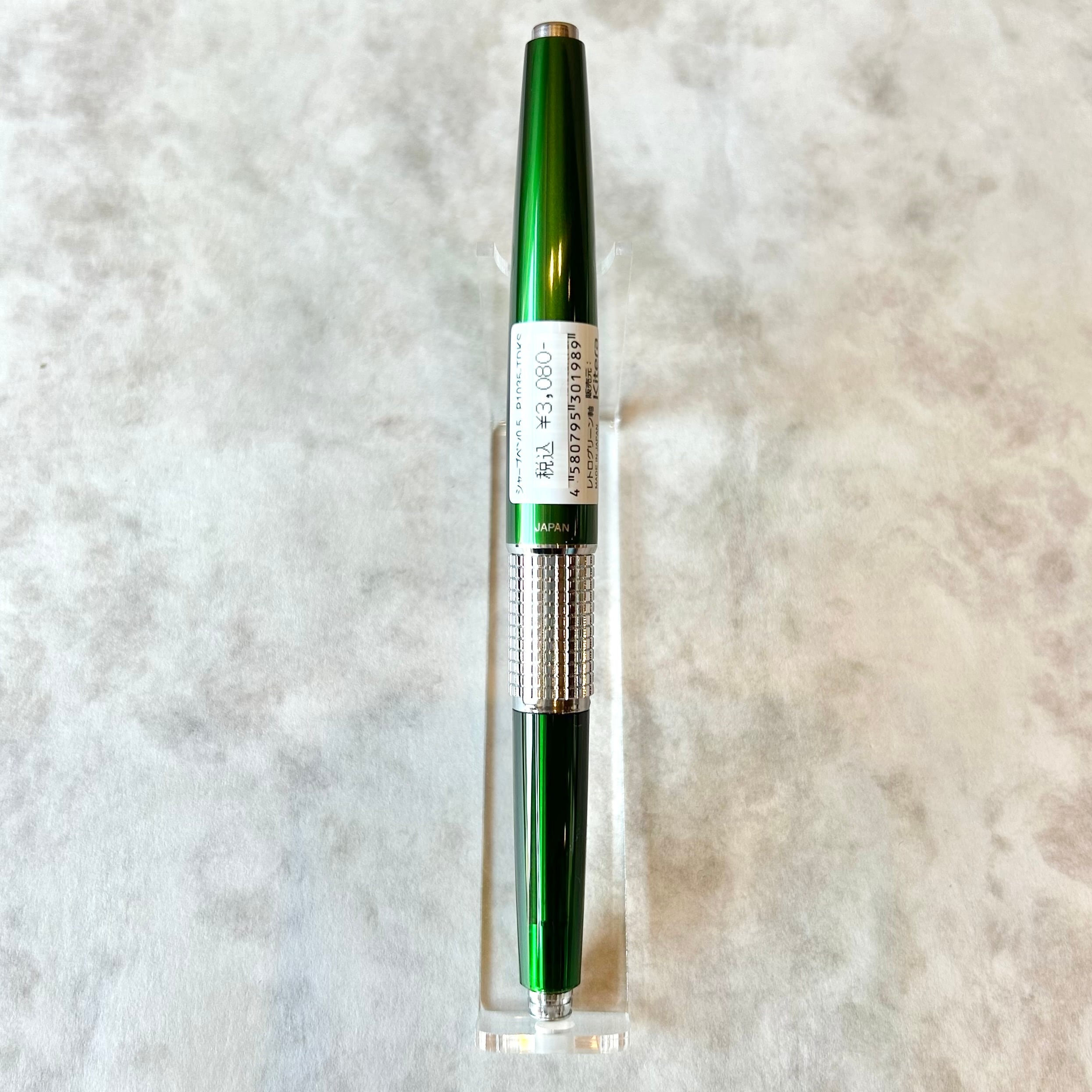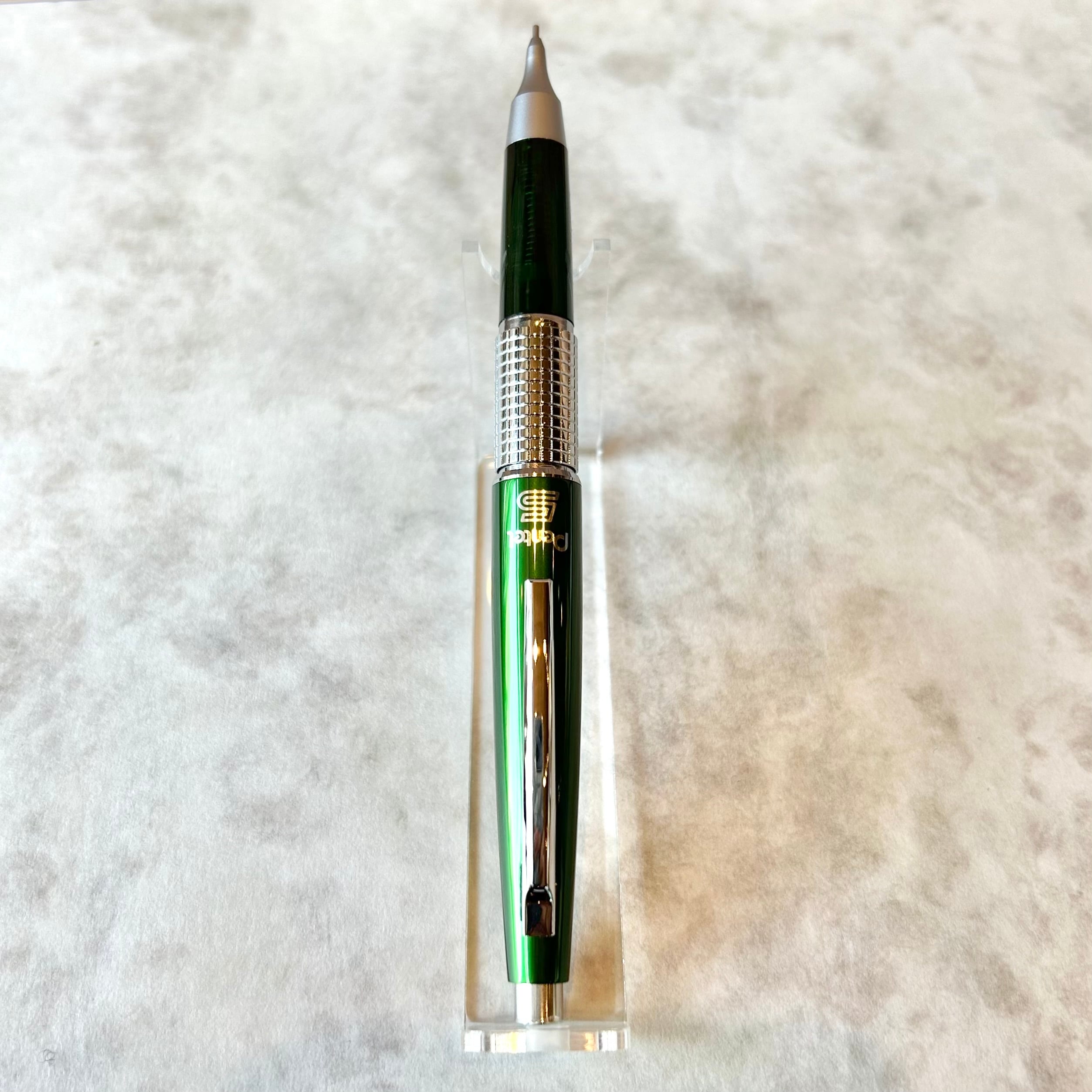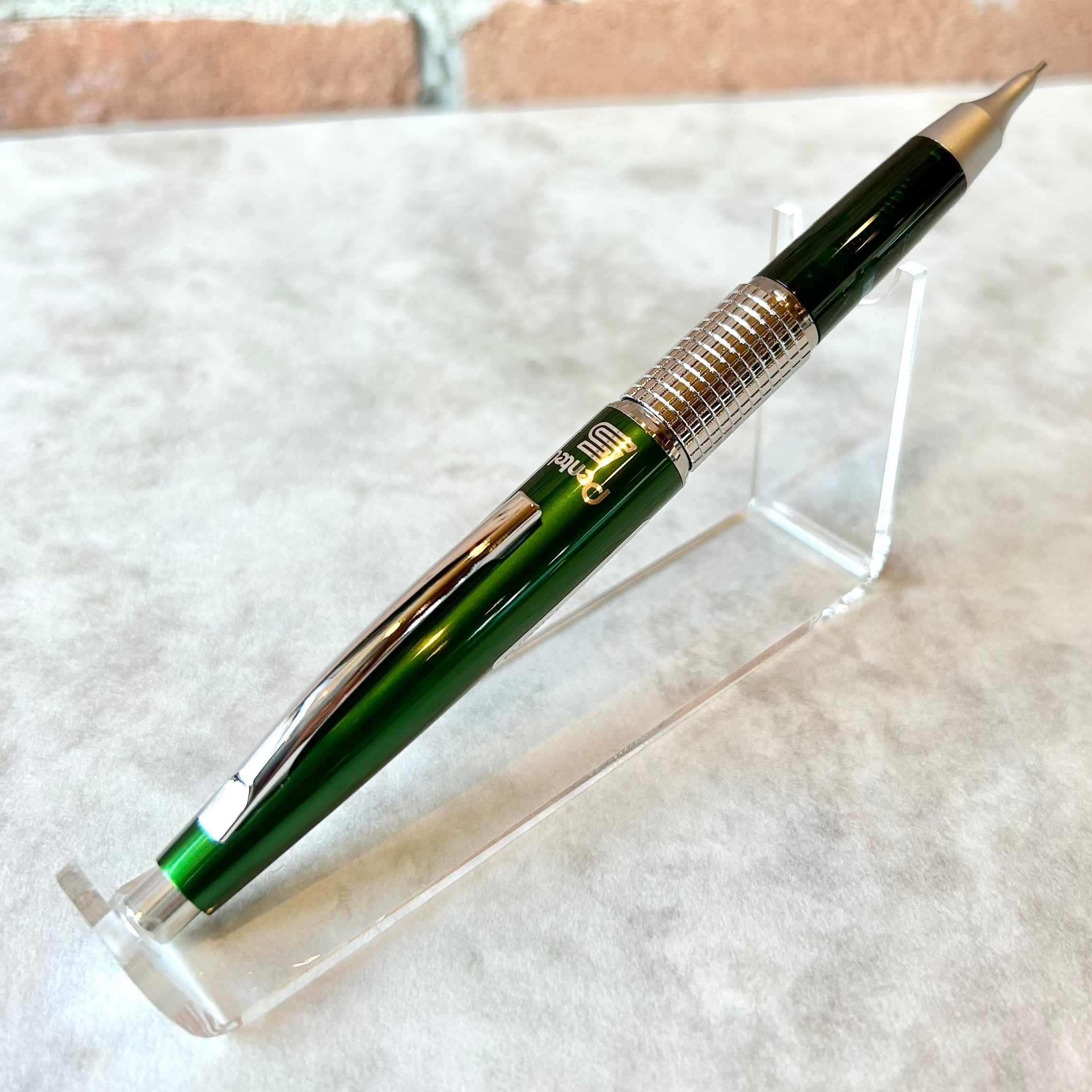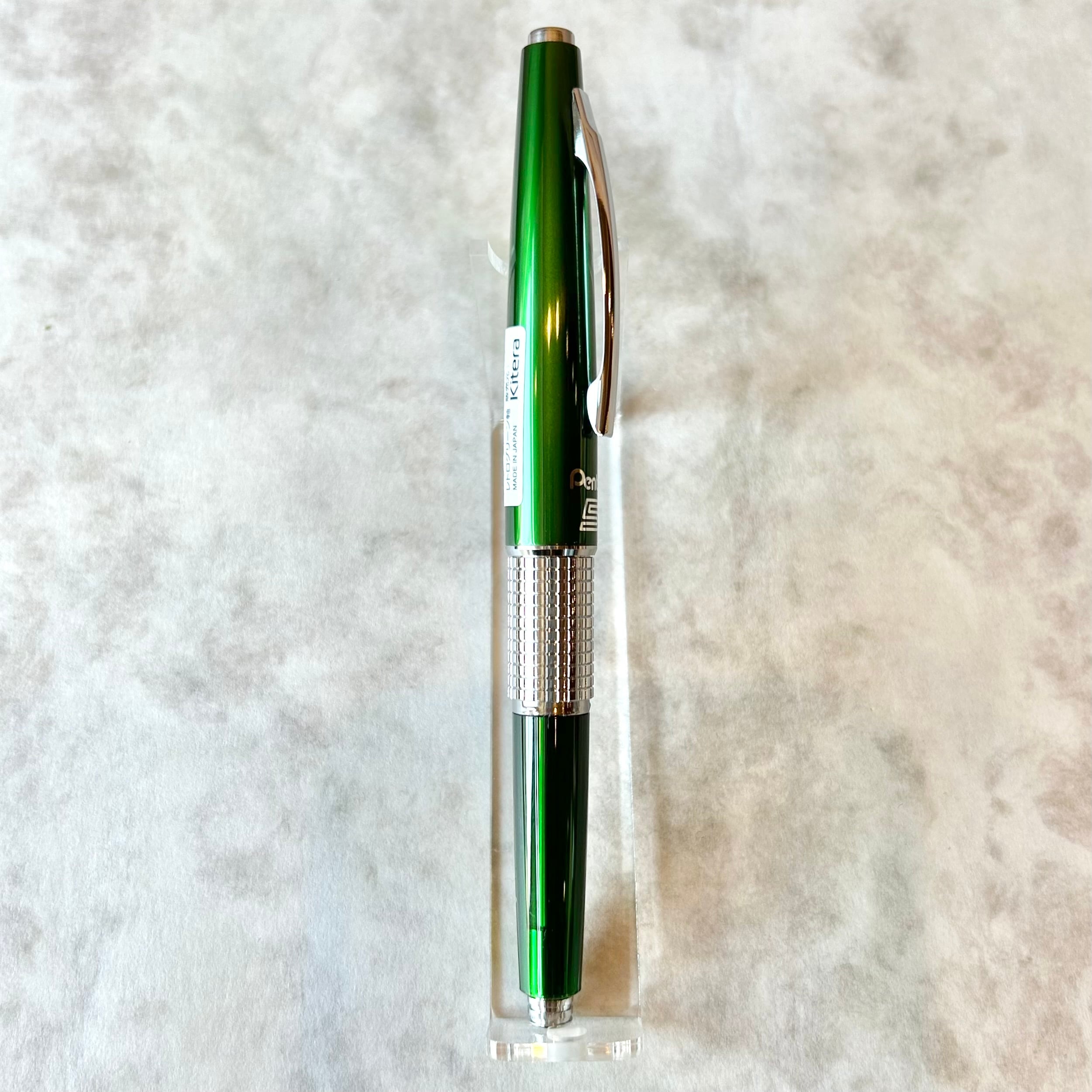キャップのカラーはメタリックなグリーンで、軸の色は半透明の樹脂を使用している限定仕様です。