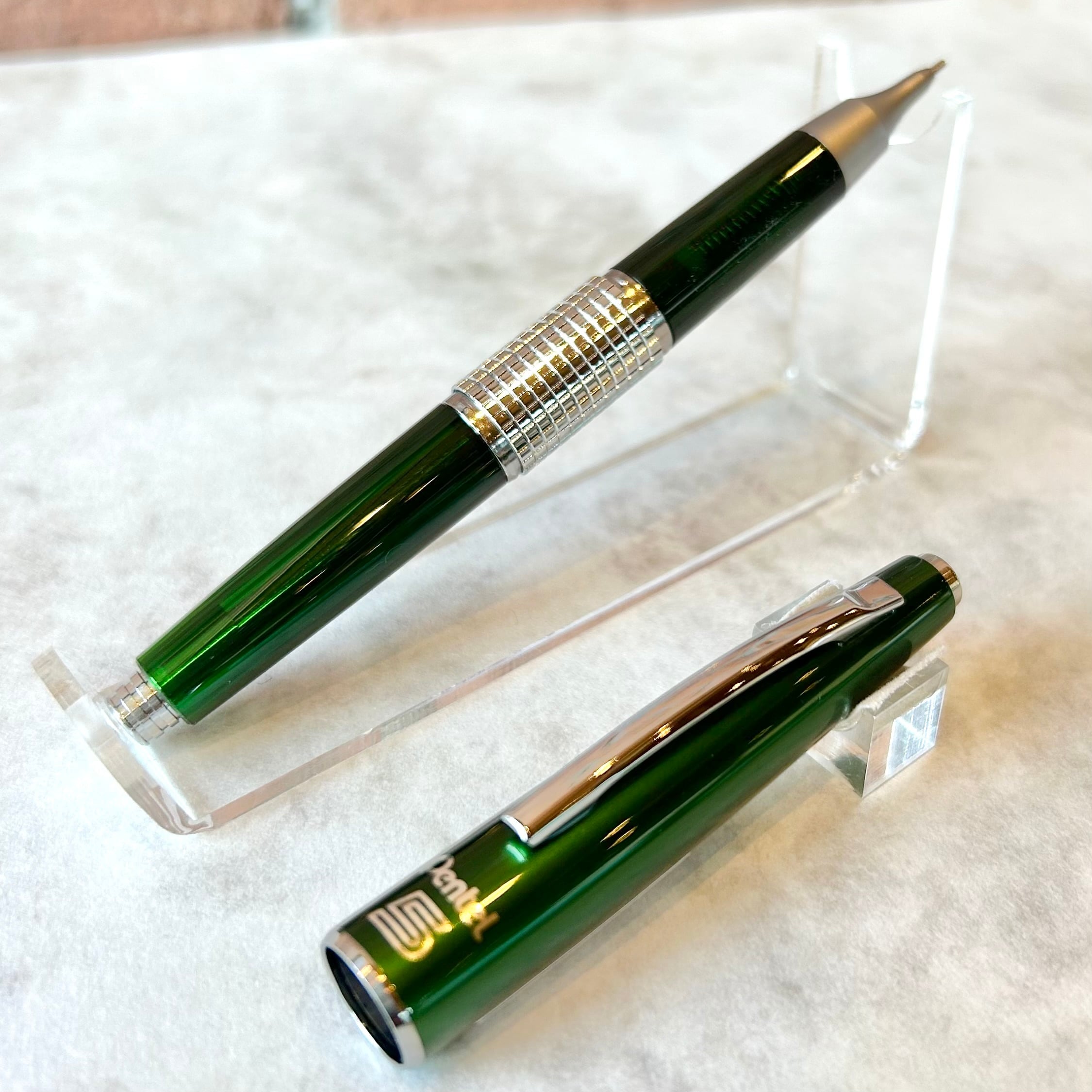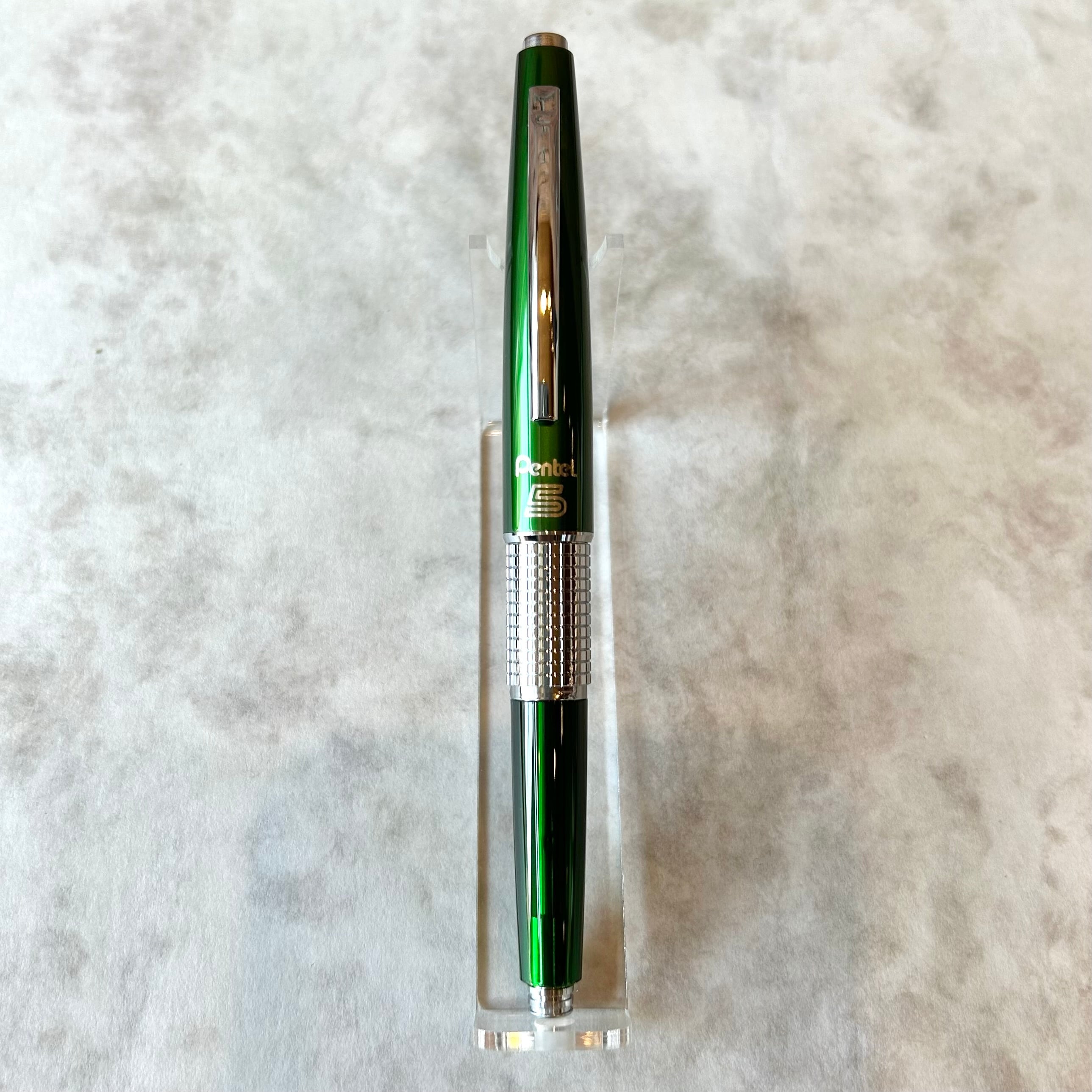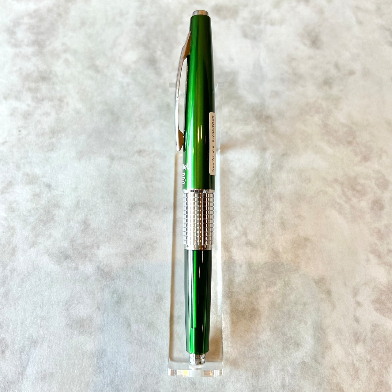 キャップのカラーはメタリックなグリーンで、軸の色は半透明の樹脂を使用している限定仕様です。