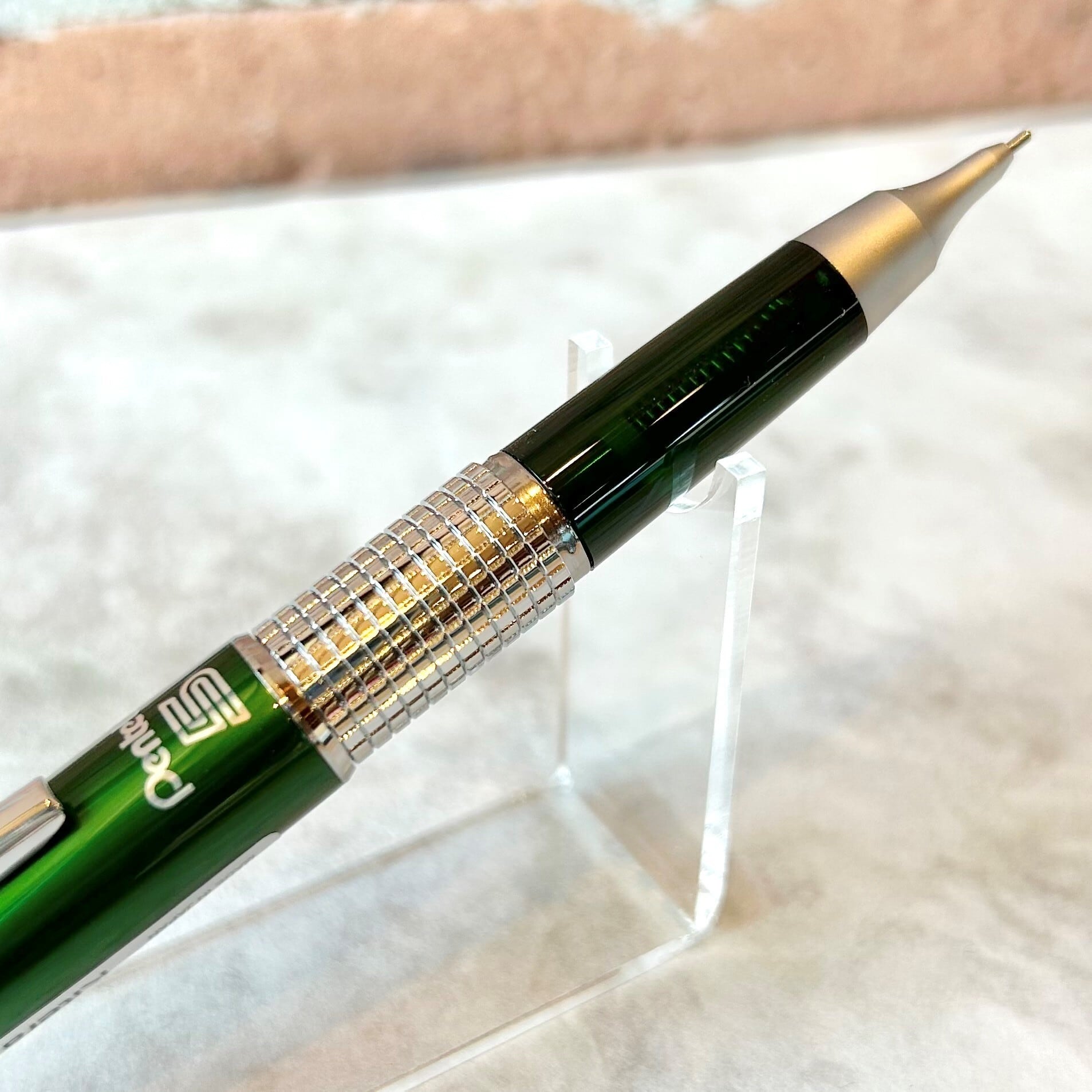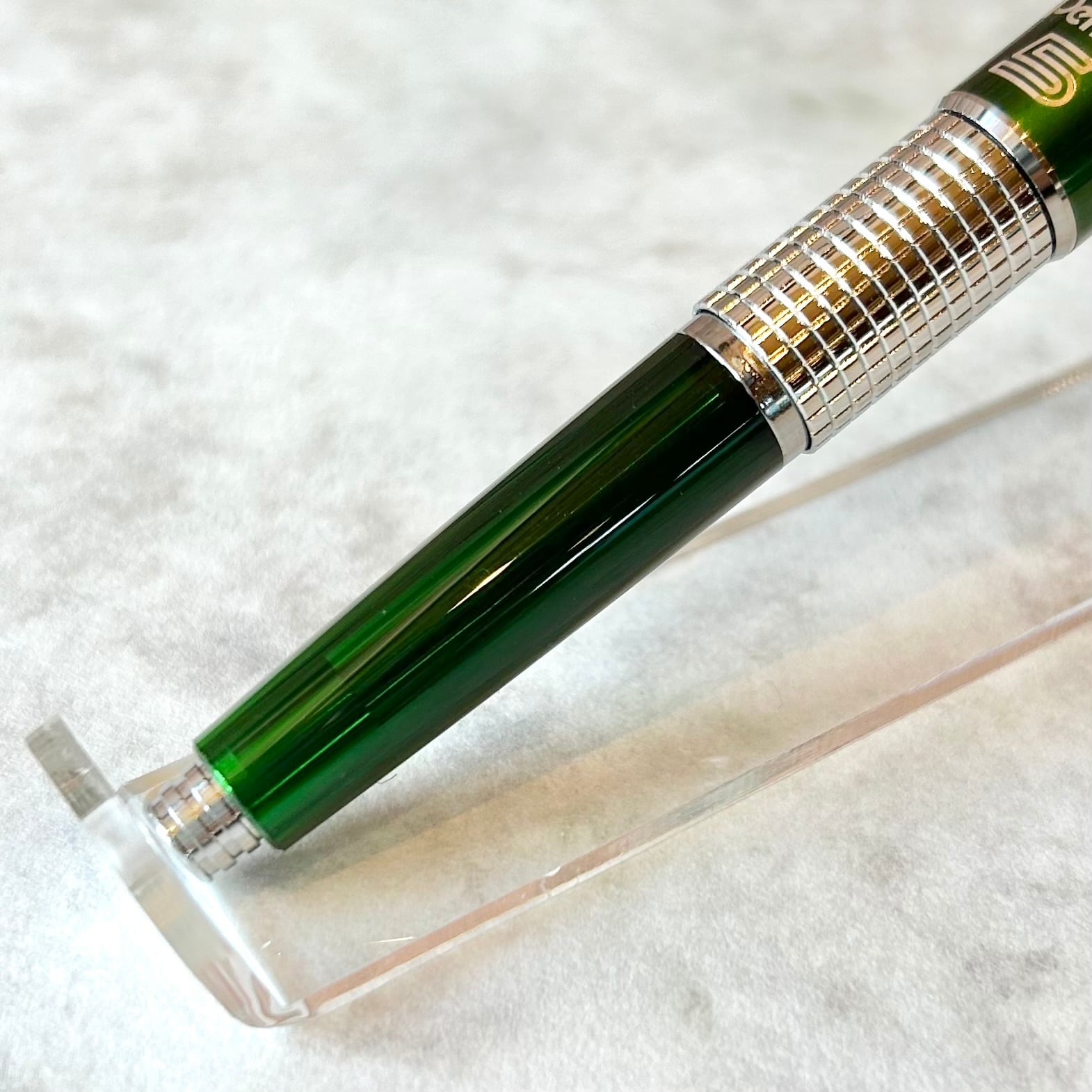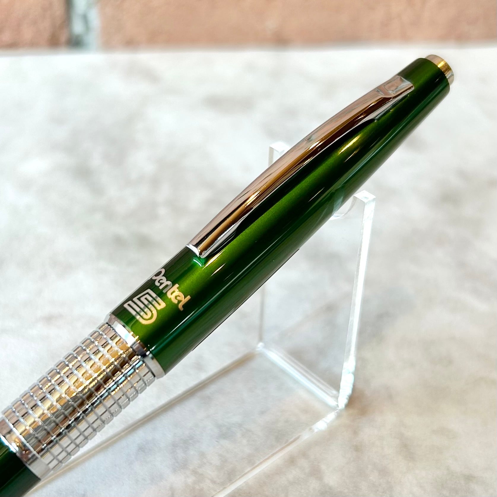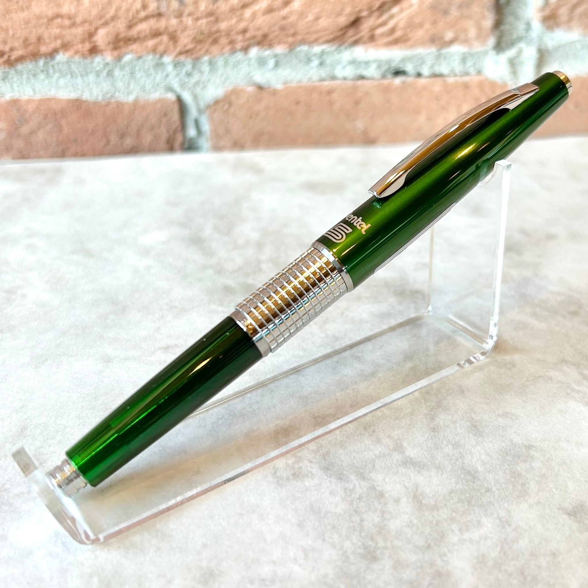 キャップのカラーはメタリックなグリーンで、軸の色は半透明の樹脂を使用している限定仕様です。