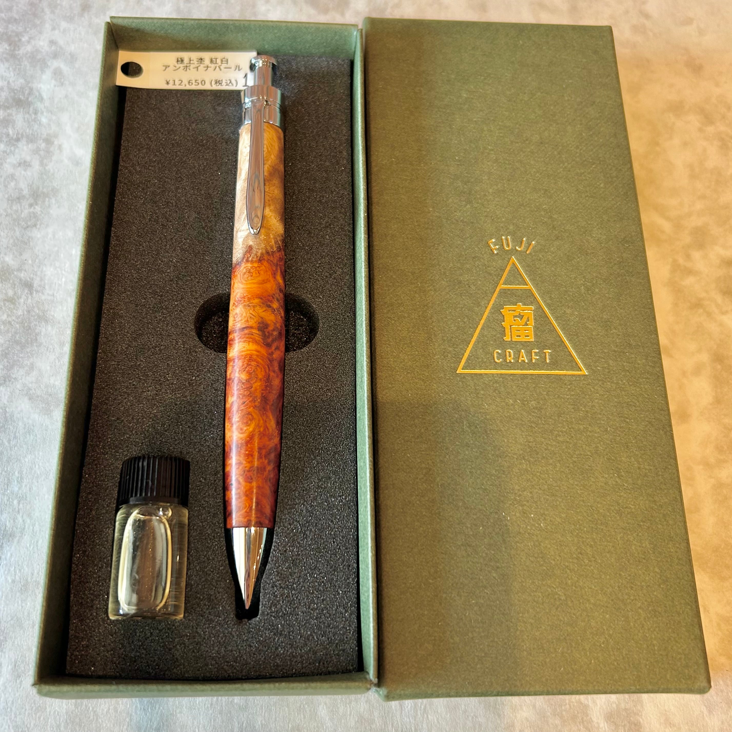富士瘤クラフト シャープペン 【極上杢 紅白 アンボイナバール ①】ボールペン換装可