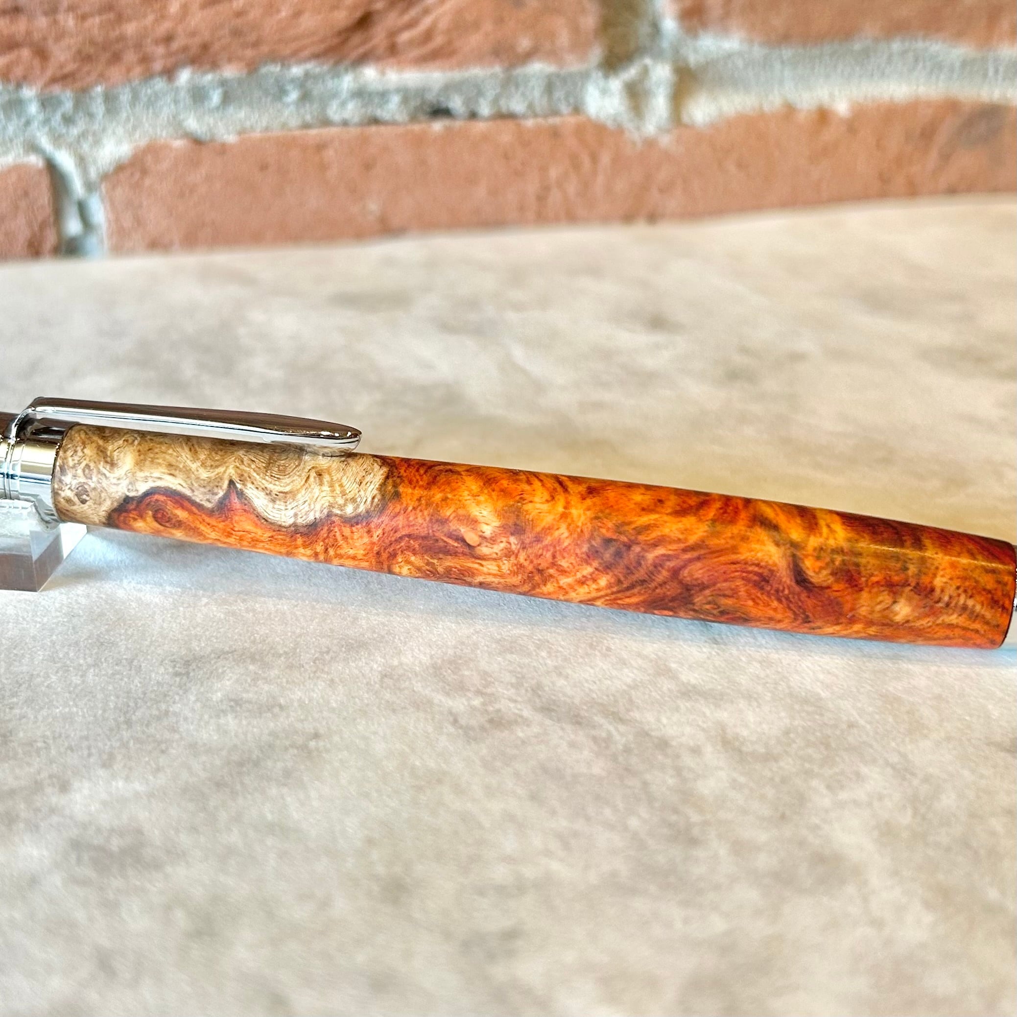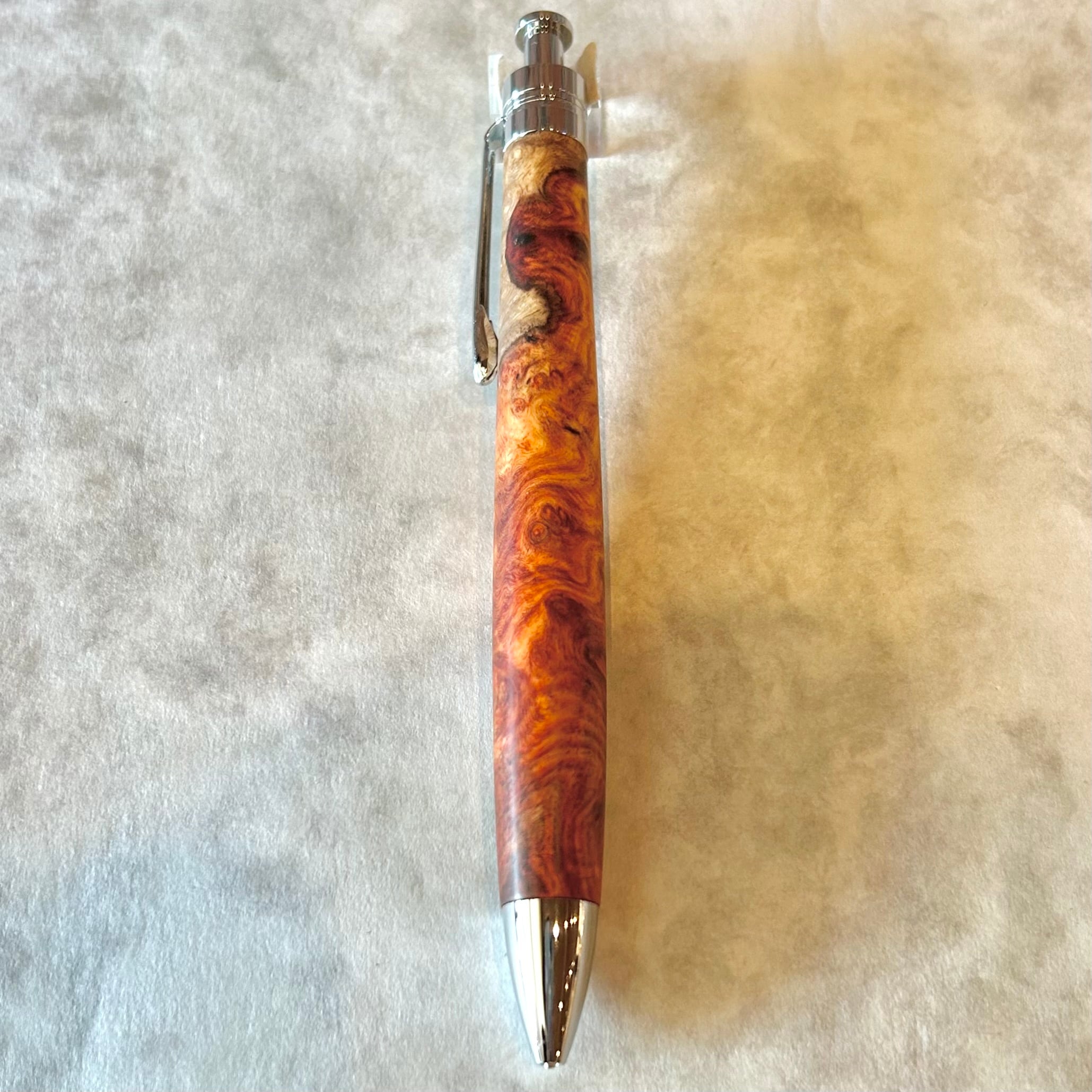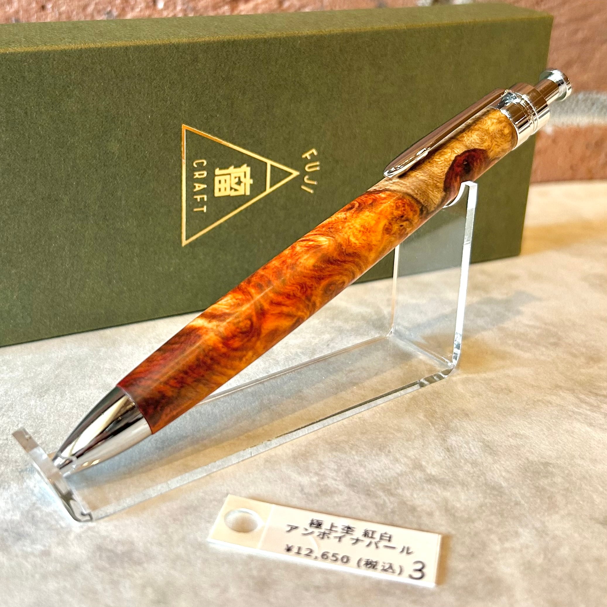 富士瘤クラフト シャープペン 【極上杢 紅白 アンボイナバール ③】ボールペン換装可