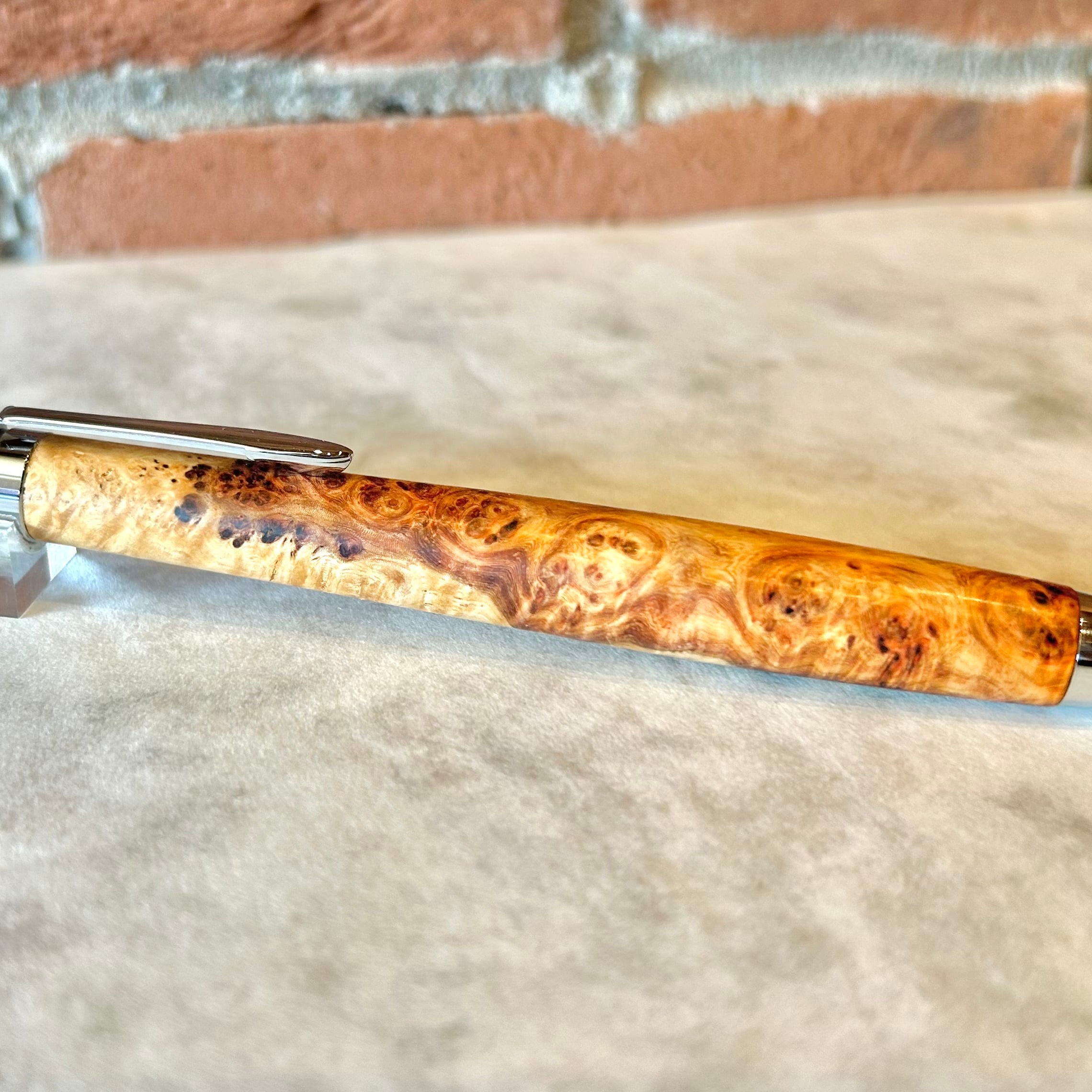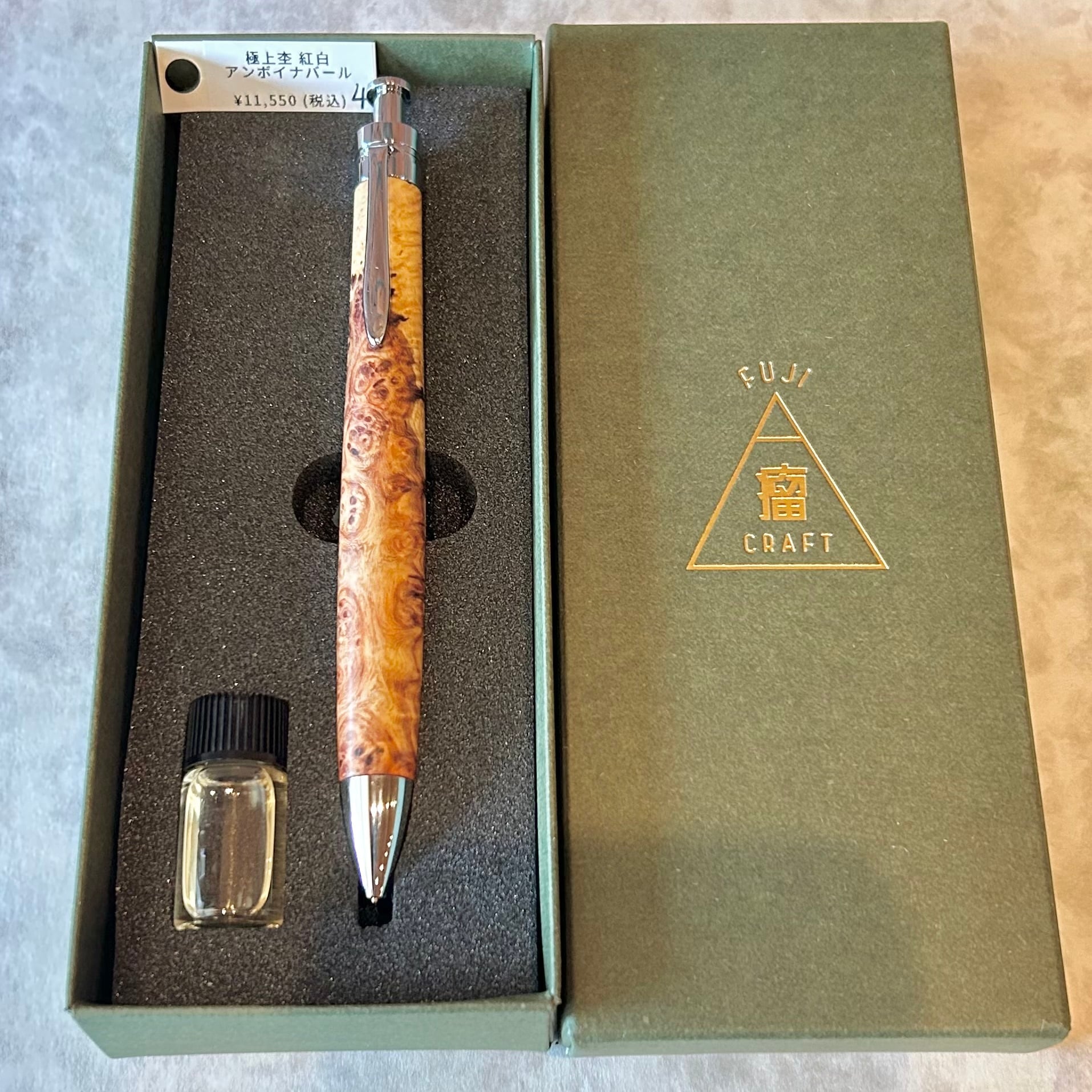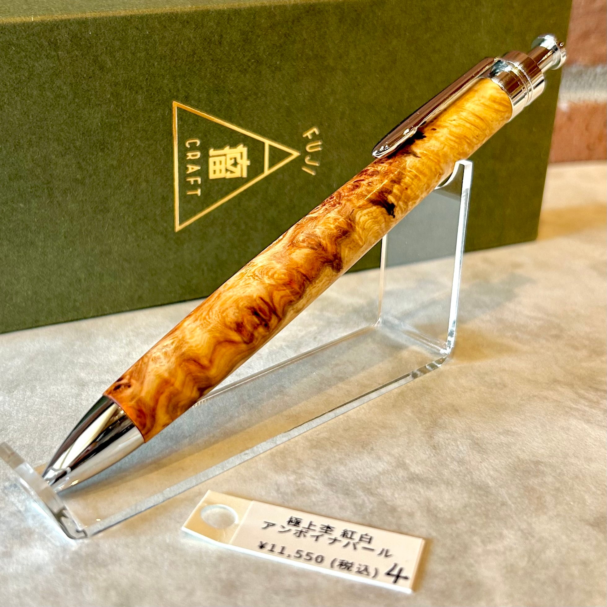 富士瘤クラフト シャープペン 【極上杢 紅白 アンボイナバール ④】ボールペン換装可