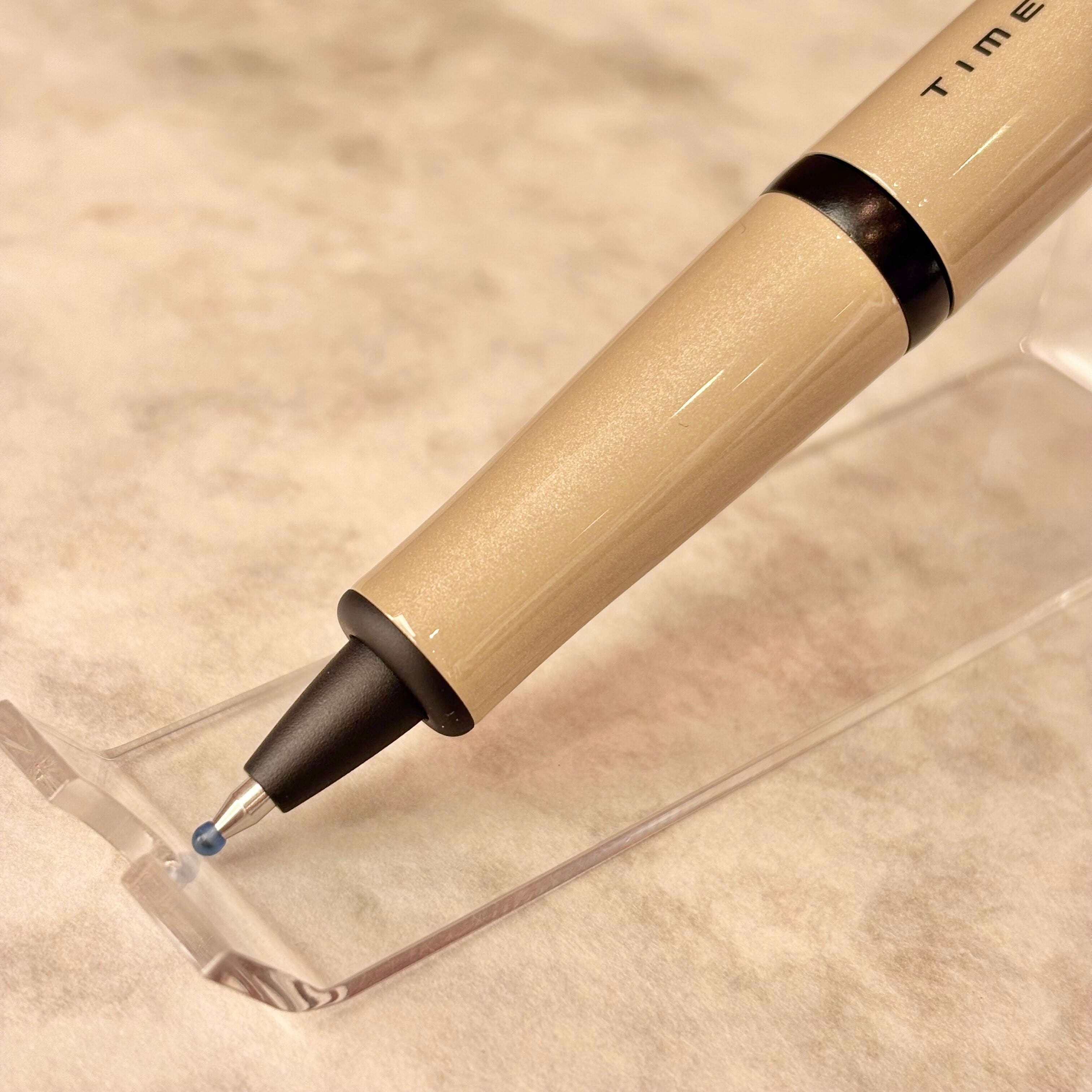 「過去・現在・未来・永遠」という移り変わる時間軸をテーマとした独特形状の油性ボールペン。