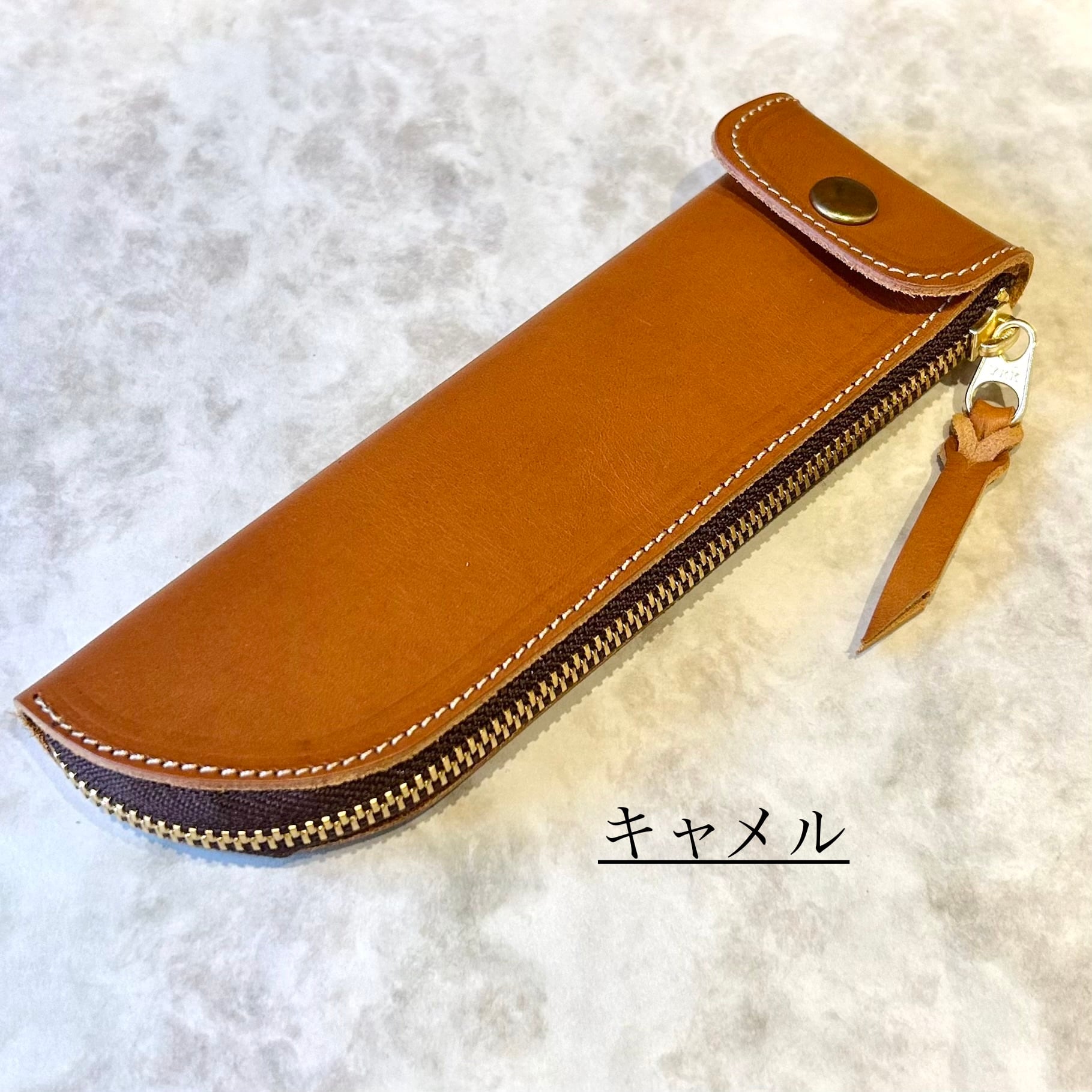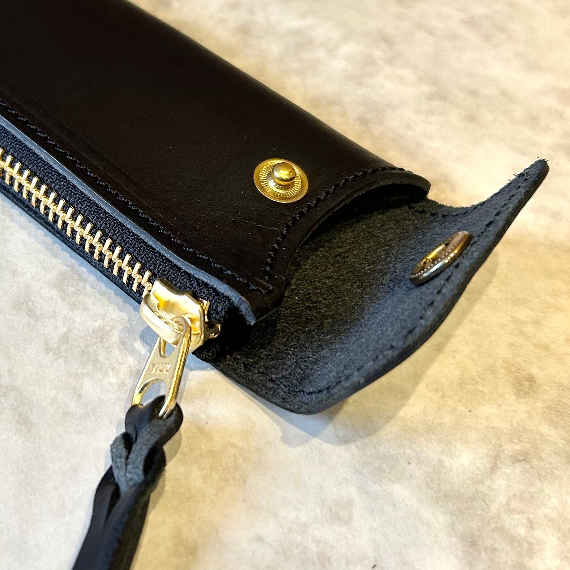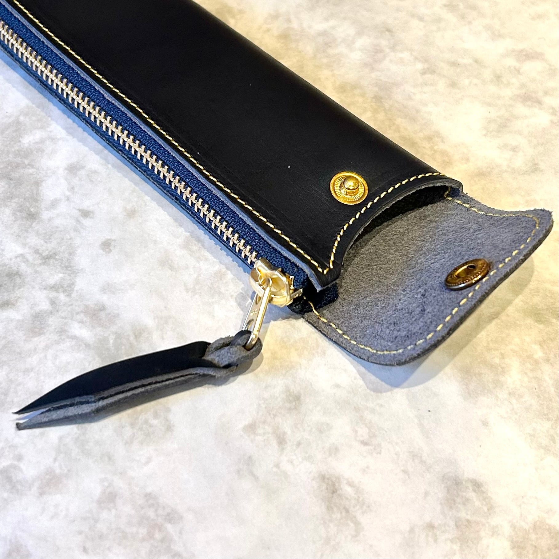 ◆ペンケースにはスナップボタンが1つ付いており、こちらを開くとスマートなペンケースとしてお使いいただけます。