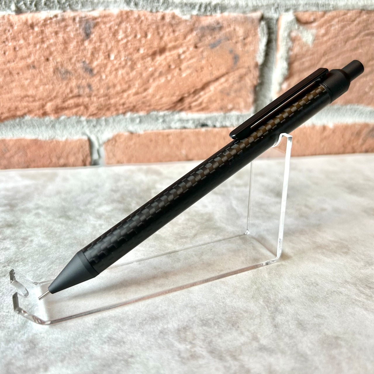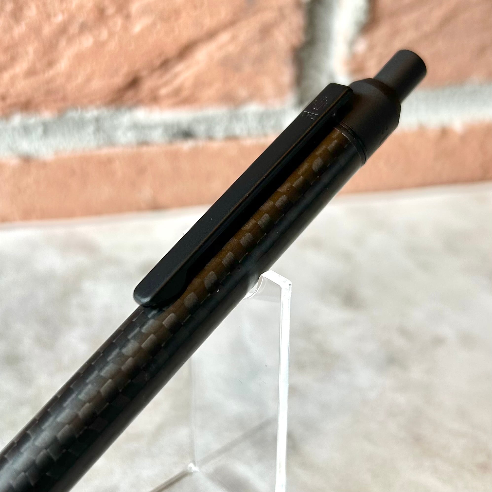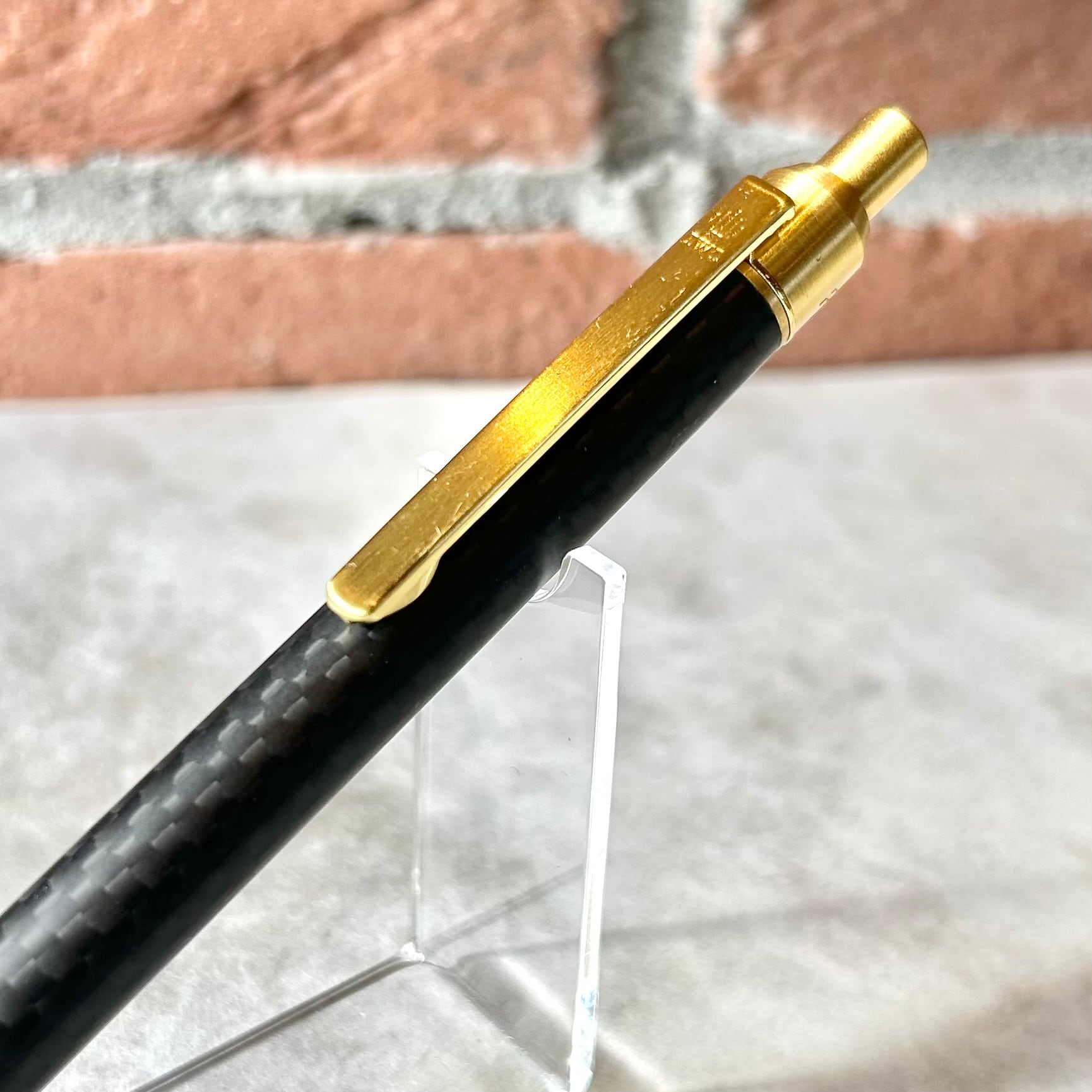 本体の真鍮素材にカーボンファイバーを組み合わせたシンプルなデザインが魅力的です。