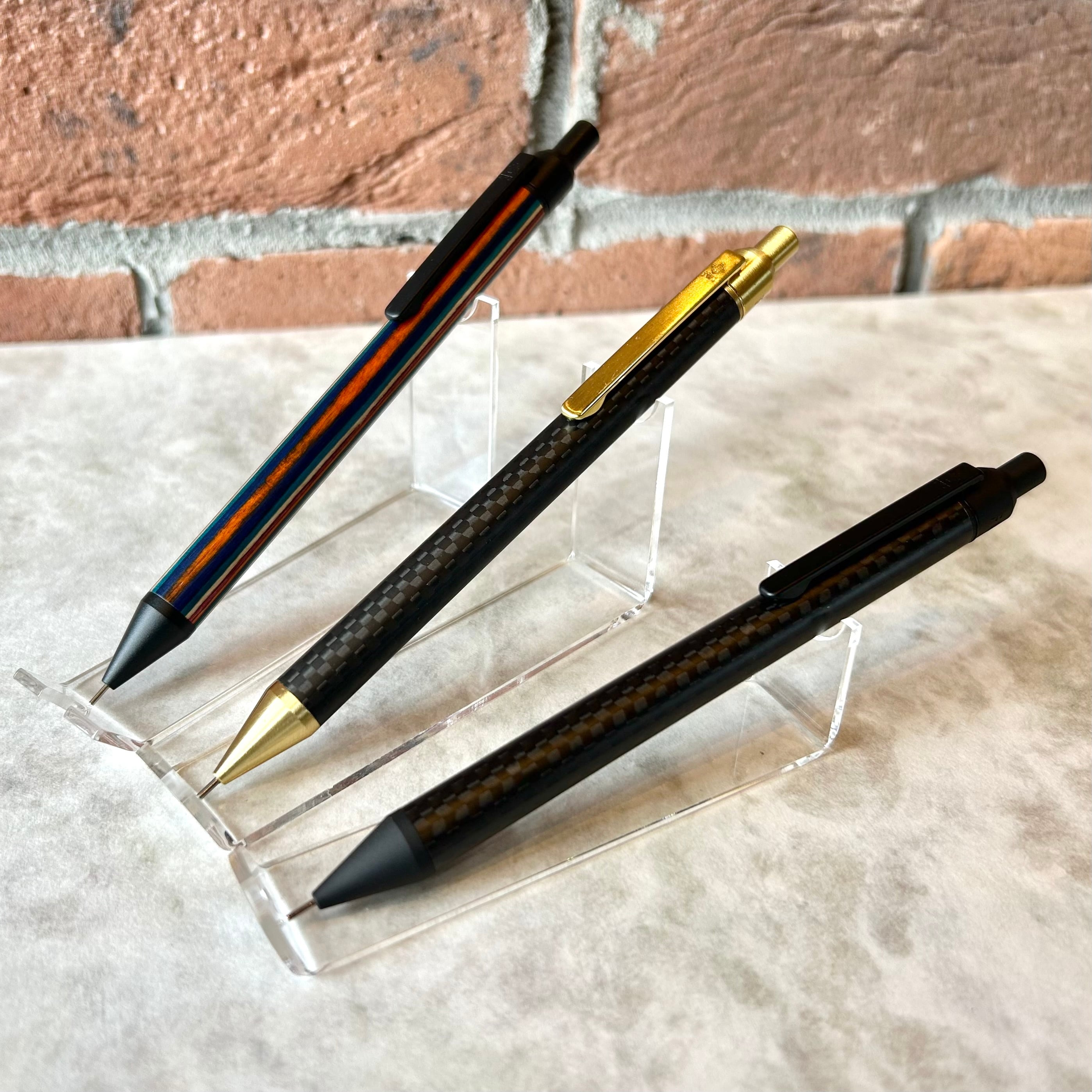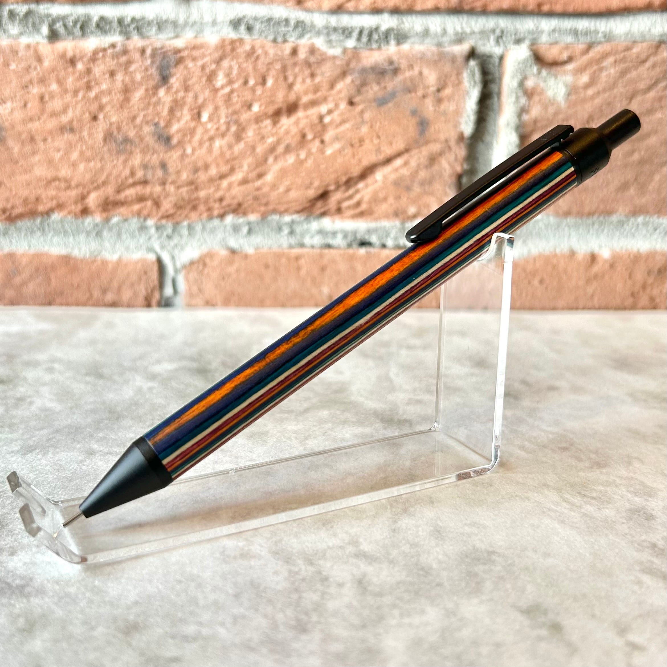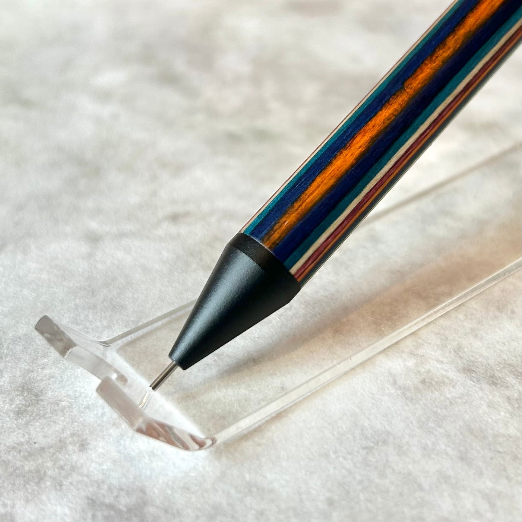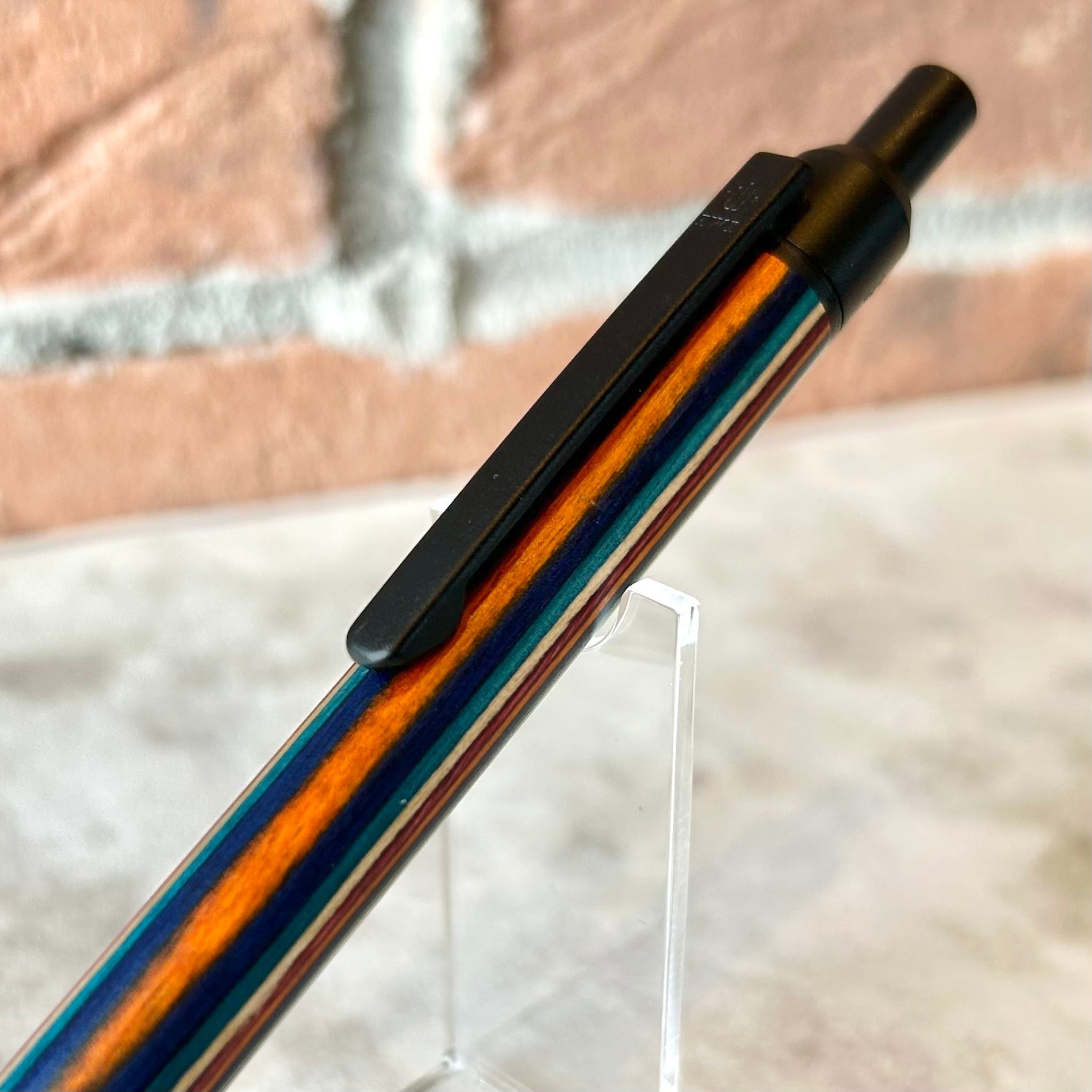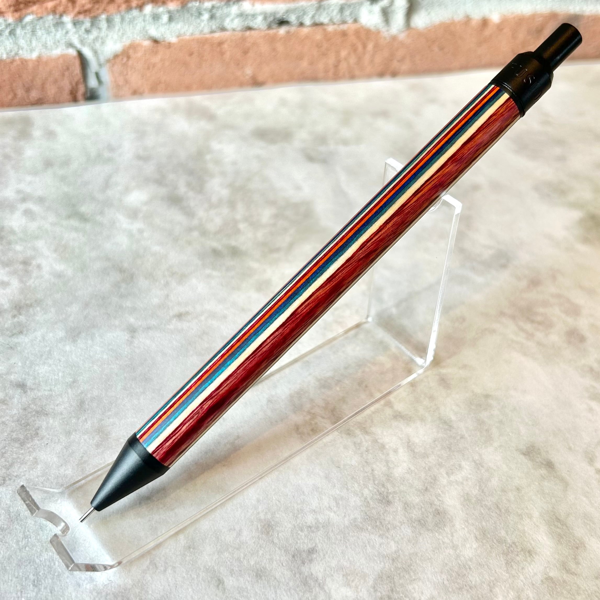 天然木材を着色した美しい木軸ペンです。洗練されたデザインが魅力的です。