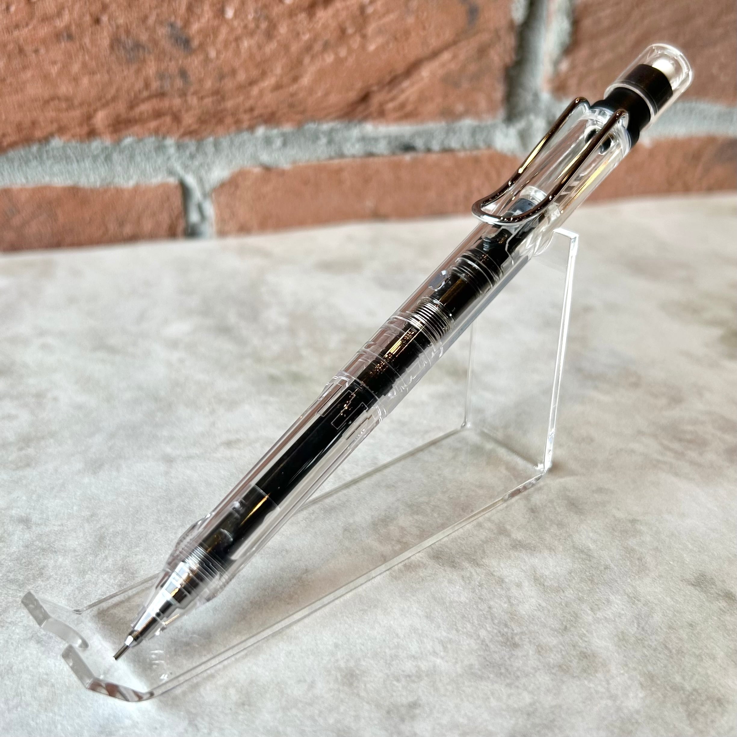 ◆ペンの機構内部で芯が回り続けることで、シャープ芯が尖り続ける点が特長の「クルトガ」