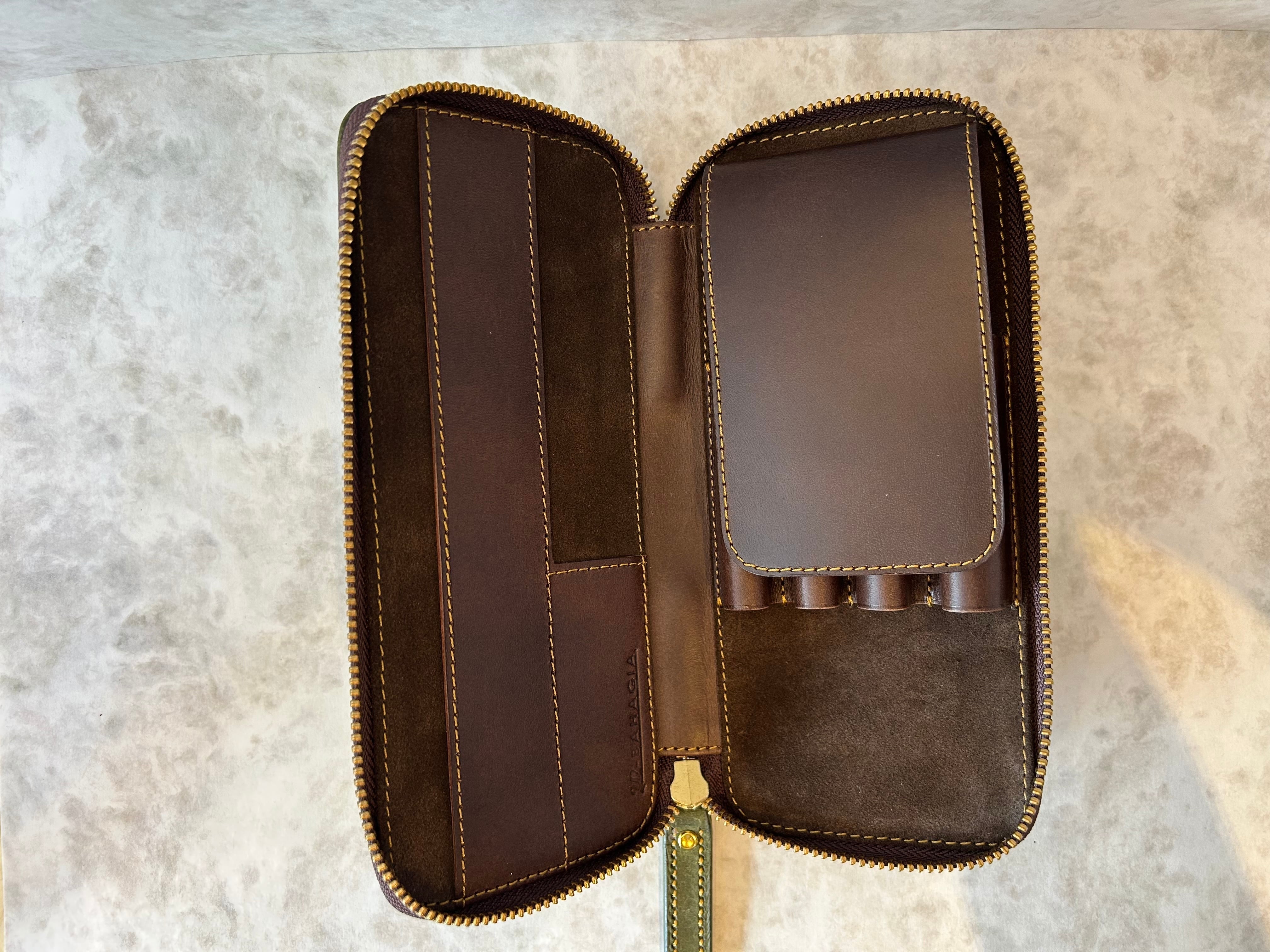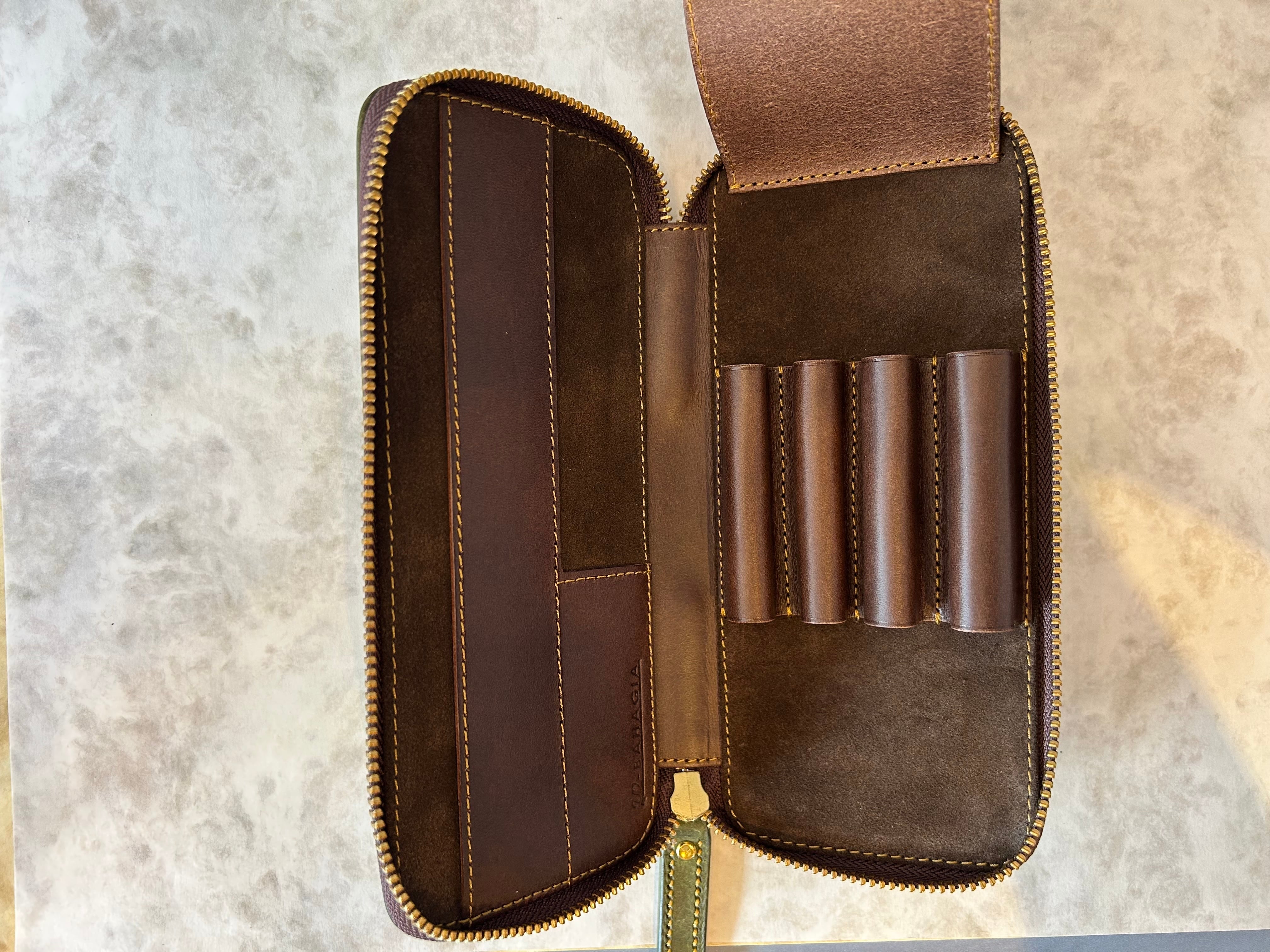 バハギア & クラフト ラウンドジップペンケース (プエブロ革 オリーバ)