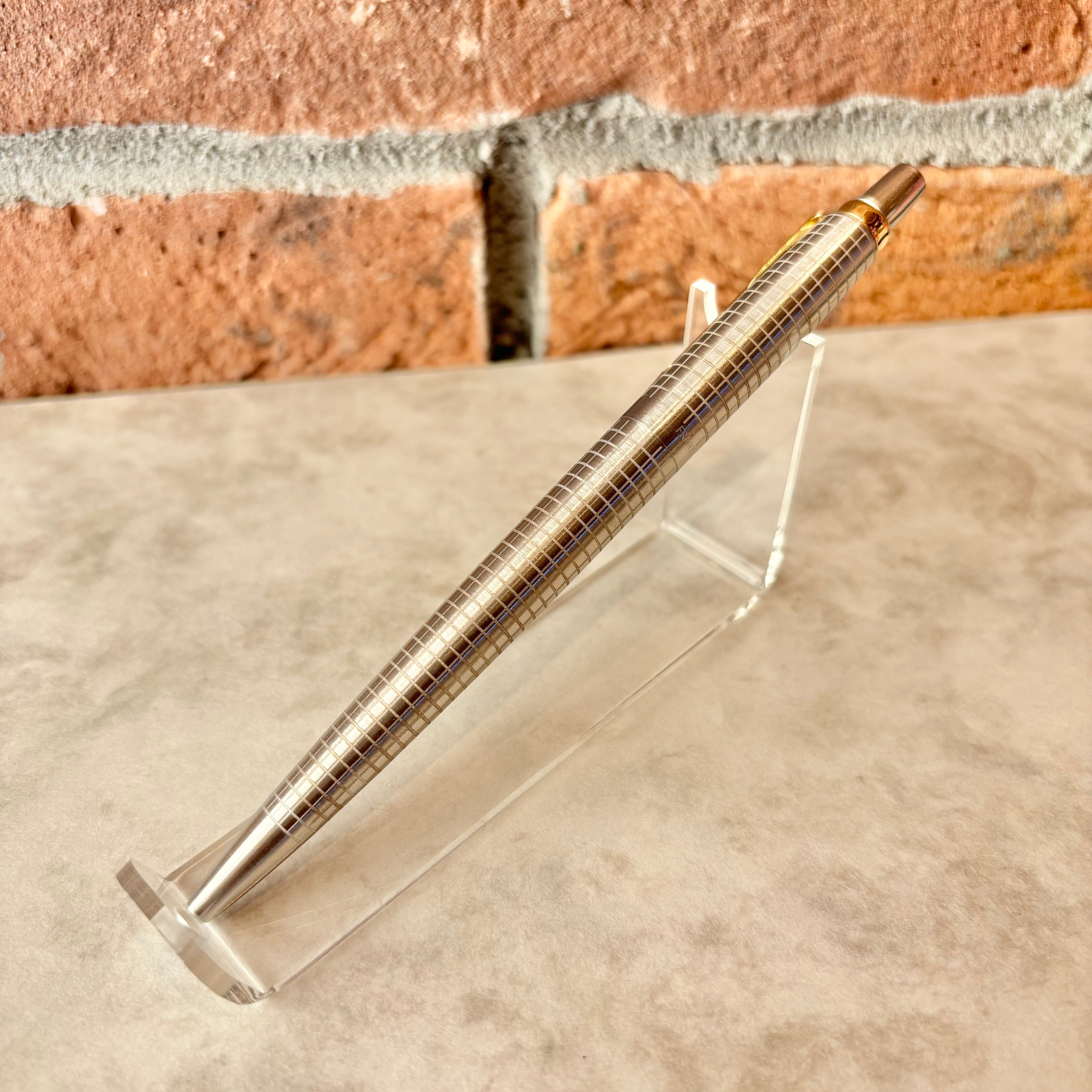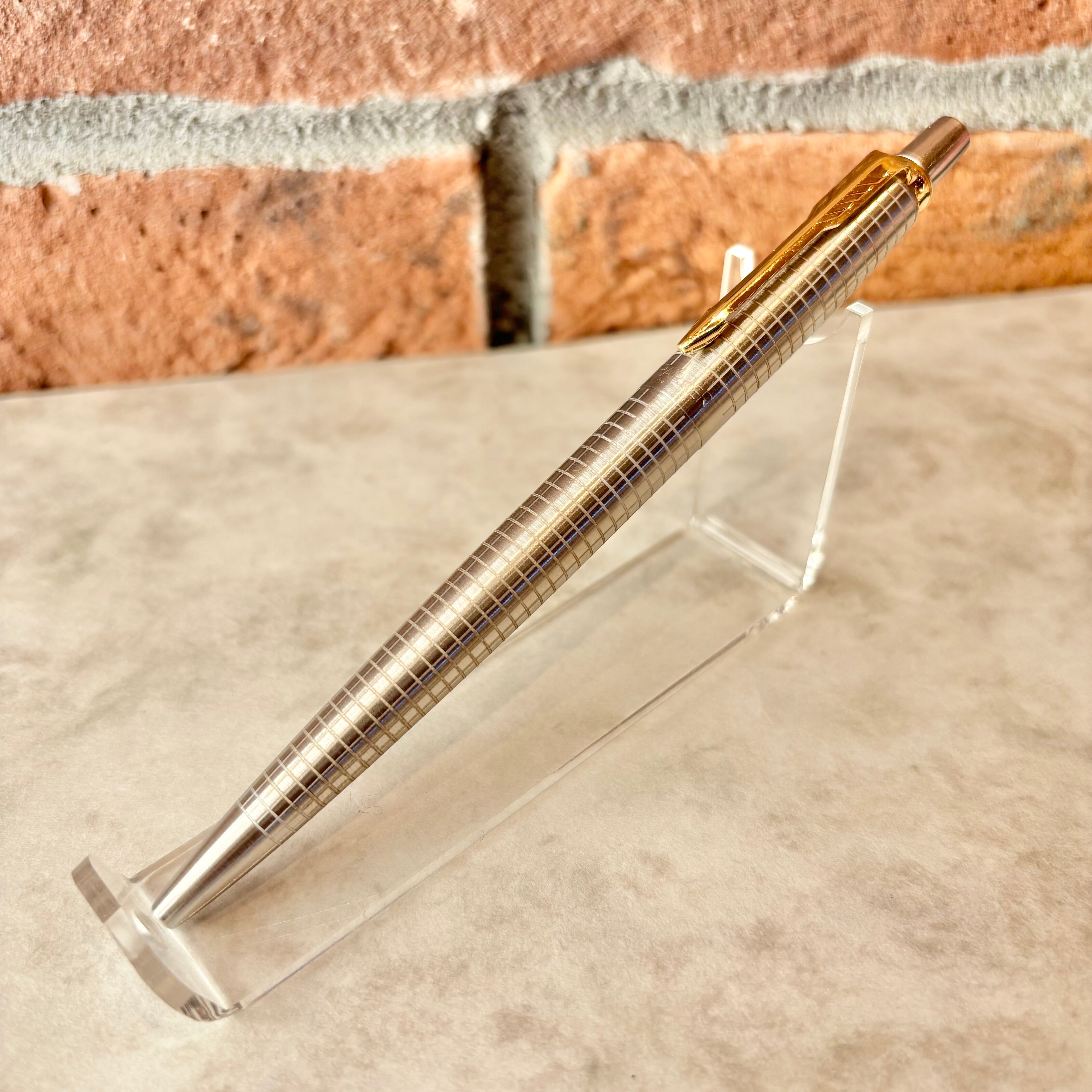 基本スタイルを変えずに、時代ごとのニーズに応じて進化を遂げてきた「ジョッター」の重みを表現するために、再生ステンレススチールの軸にパーカーのシンボルである「シズレパターン(格子模様)」をレーザー彫刻しています。
